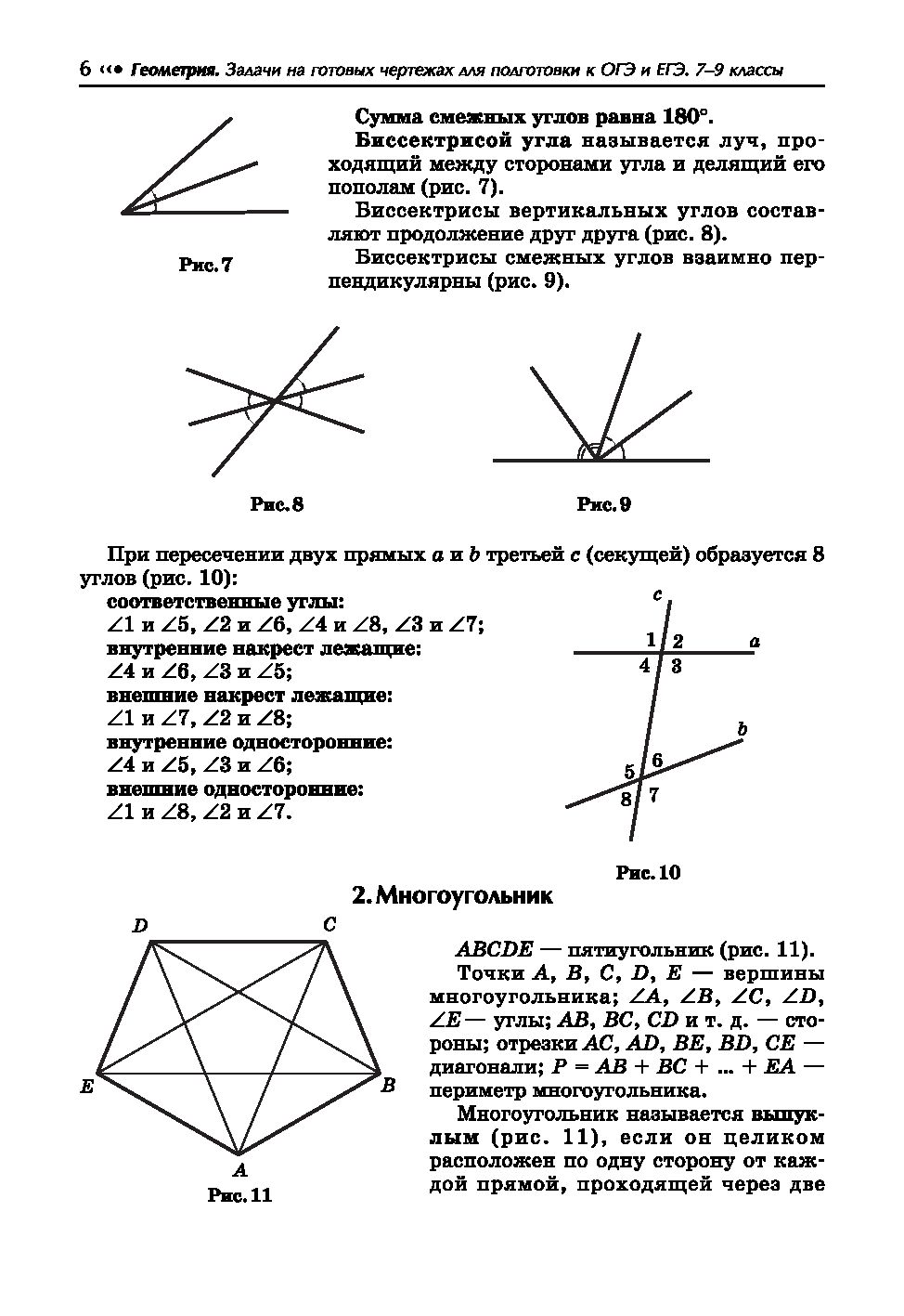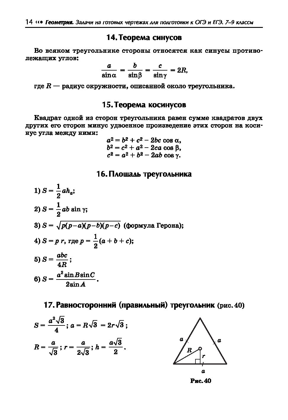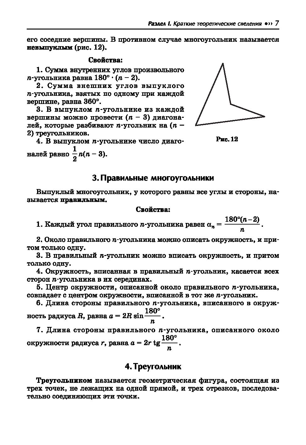 Кроме того, приводятся краткие теоретические сведения по курсу геометрии 7-9 классов, сопровождаемые определениями, теоремами, основными свойствами и необходимыми справочными материалами. К наиболее трудным задачам приведены решения и указания.