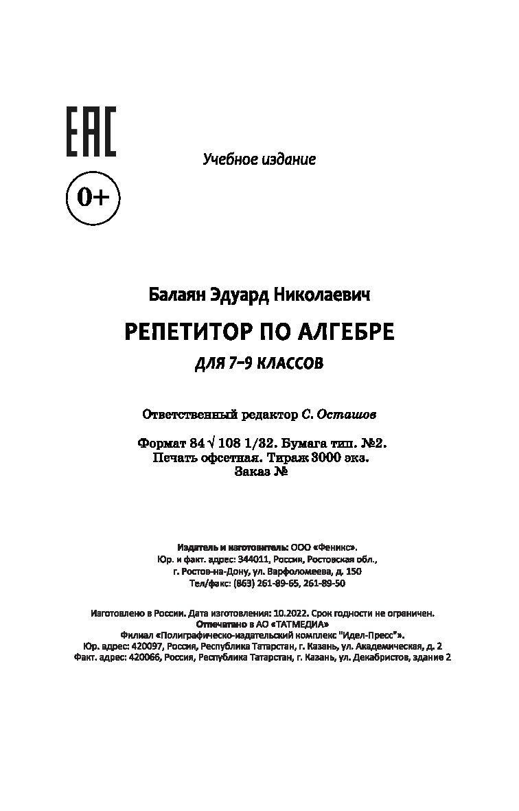 | Изготовитель | ЗАО "Издательство "Феникс". 190000, РФ, г. Санкт-Петербург, пер. Антоненко, 2 |
