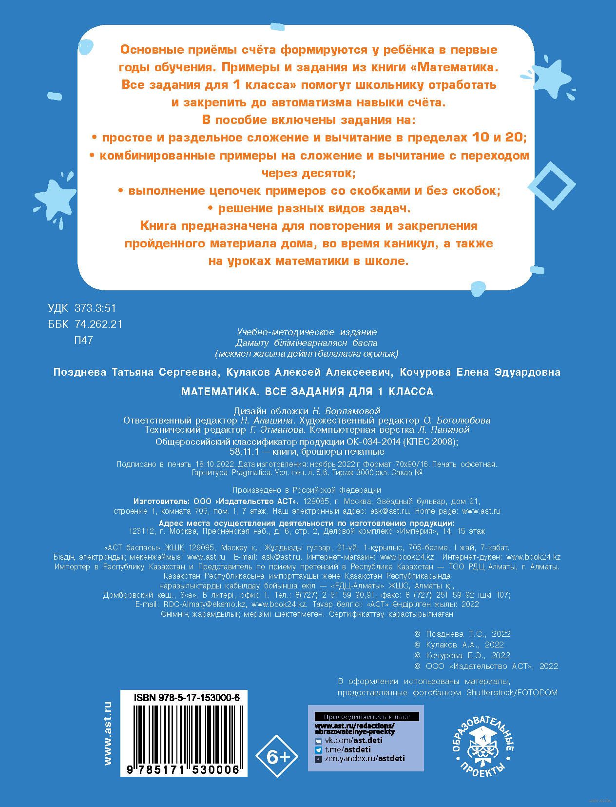 Основные приемы счета формируются у ребенка в первые годы обучения. Примеры и задания книги "Математика. Все задания для 1 класса" помогут школьнику отработать и закрепить до автоматизма навыки счета.