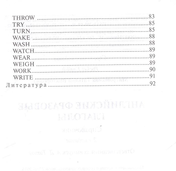 Справочник содержит около 500 наиболее распространенных фразовых глаголов, без усвоения которых невозможно свободно общаться на английском языке. Определения значений фразовых глаголов сопровождаются примерами, иллюстрирующими употребление их в речи, с переводом на русский язык.