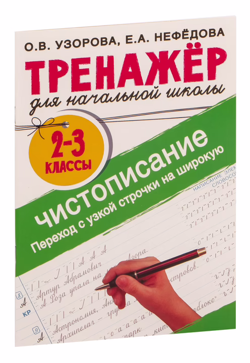 "Тренажёр по чистописанию. Переход с узкой строчки на широкую. 2-3 классы" – это прописи для учеников 2-3 классов, основанные на авторской методике О. В. Узоровой. Упражнения по чистописанию помогут ребятам отработать и довести до автоматизма навык написания букв, справиться с трудностями, возникающими в процессе перехода на широкую строчку.