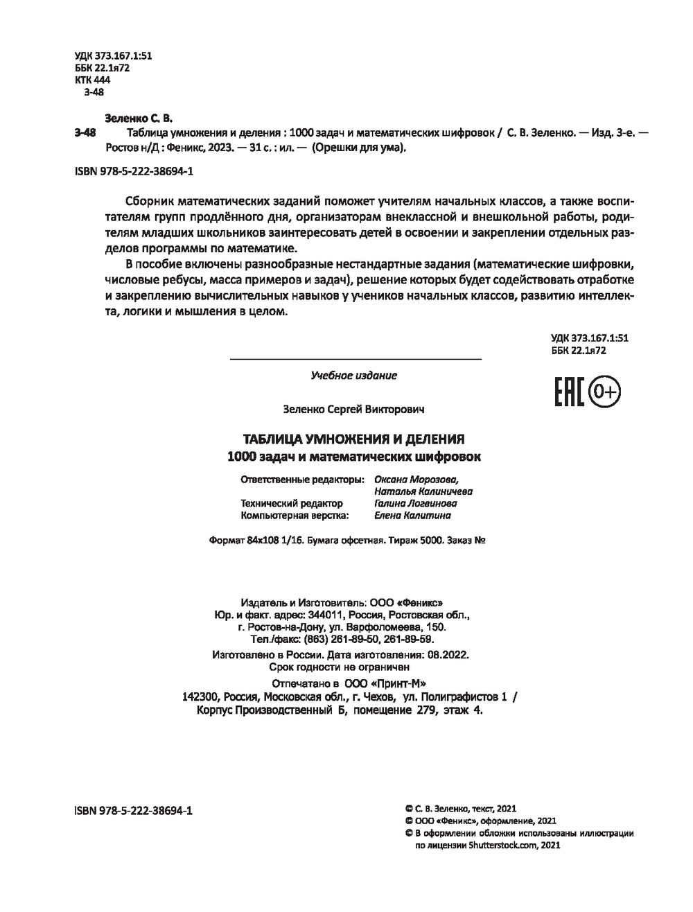 | Изготовитель | ЗАО "Издательство "Феникс". 190000, РФ, г. Санкт-Петербург, пер. Антоненко, 2 |