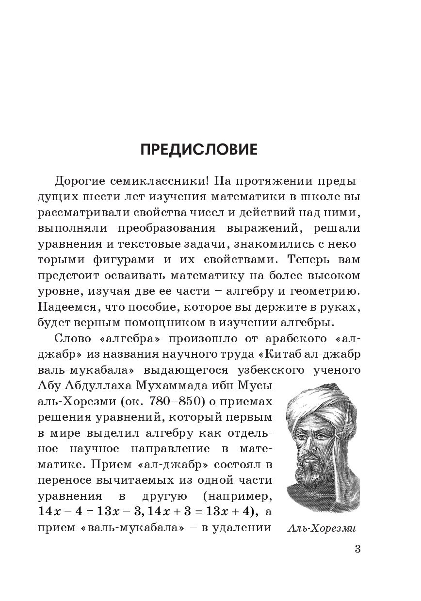 Пособие написано в соответствии с программой по математике для учреждений общего среднего образования. В нём изложен курс алгебры 7 класса в доступной, познавательной и интересной форме. Теория сопровождается примерами и задачами с решениями. К каждой теме предлагаются упражнения трёх уровней сложности и занимательные задачи, в том числе олимпиадного характера, которые в дальнейшем помогут подготовиться к экзаменам и тестам, а также развить математические способности учащихся.