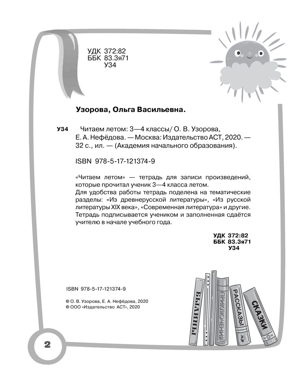 В тетрадку "Читаем летом. 3-4 классы" можно записать все произведения, которые ребёнок прочитал за лето.