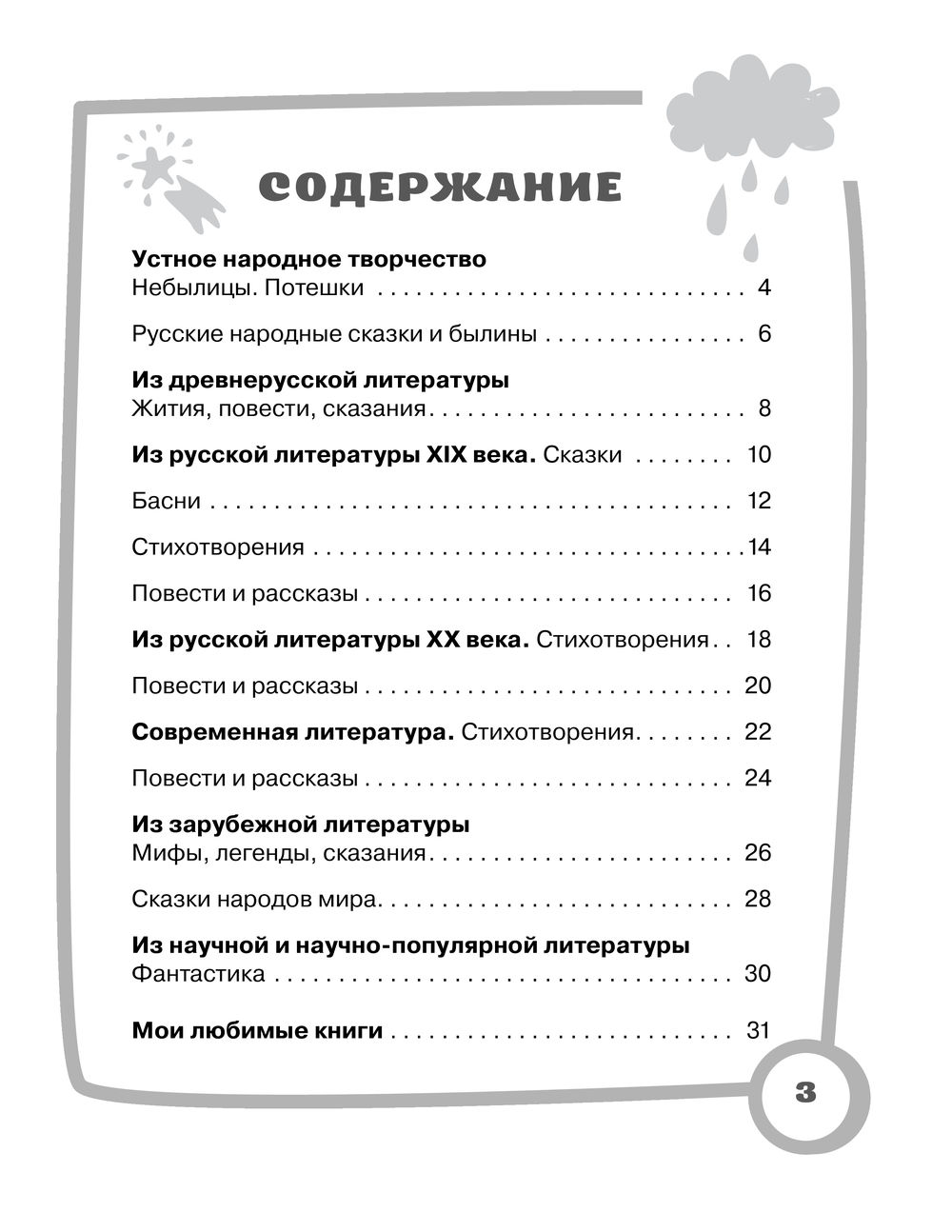 Для удобства заполнения тетрадь поделена на тематические разделы "Русские народные сказки", "Пословицы и поговорки", "Стихотворения о природе", "Рассказы о животных" и другие, и ученик лишь записывает прочитанное в нужный раздел.