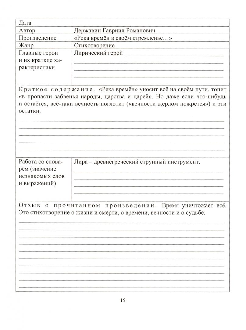Читательский дневник по литературе для 7-8 классов составлен на основе программных произведений, изучаемых по учебникам В. Я. Коровиной, В. П. Журавлёва, В. И. Коровина.
