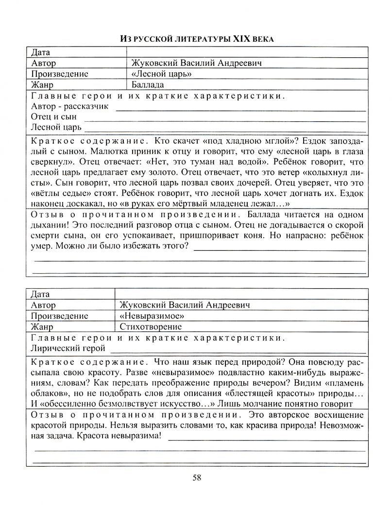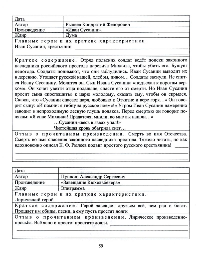 Читательский дневник по литературе для 7-8 классов содержит отзывы, краткие содержания произведений по учебникам Г. С. Меркина, список книг для самостоятельного чтения.