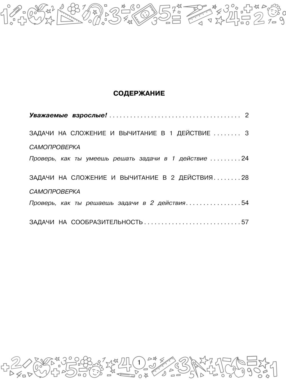 В пособии "Математика с самопроверкой. Решение задач" рассмотрены все виды решения задач, которые ребенок встретит в учебниках 1 класса, а также – большое количество нестандартных задач и задач повышенной сложности. Книгу можно использовать как в индивидуальной домашней работе с ребенком, так и в школе на уроках математики, на занятиях кружка или факультатива.
