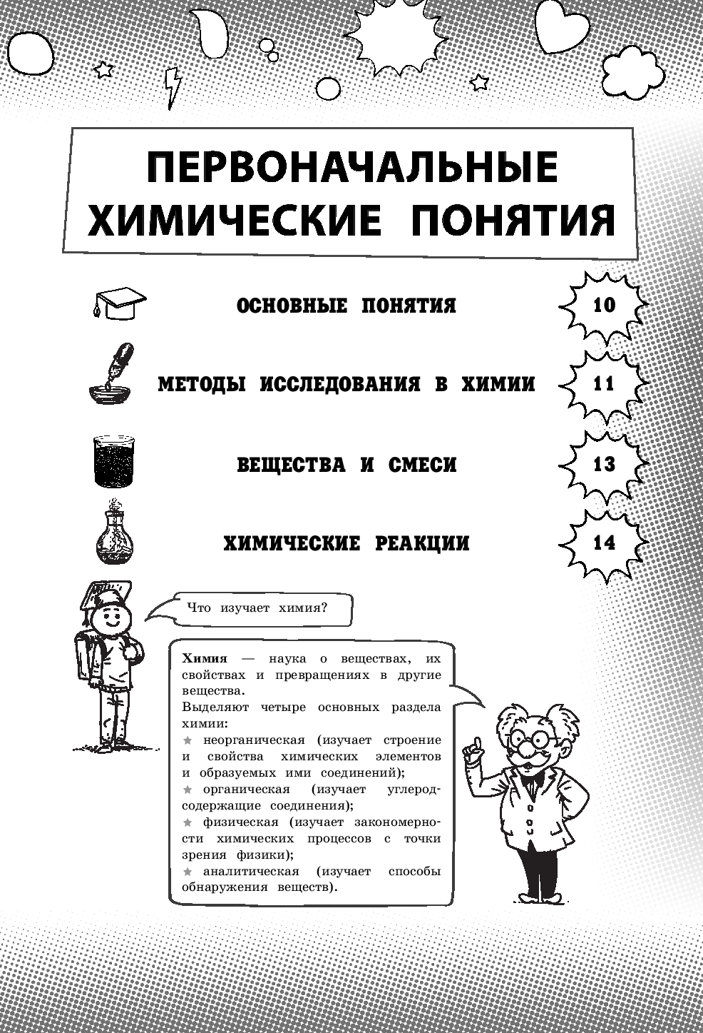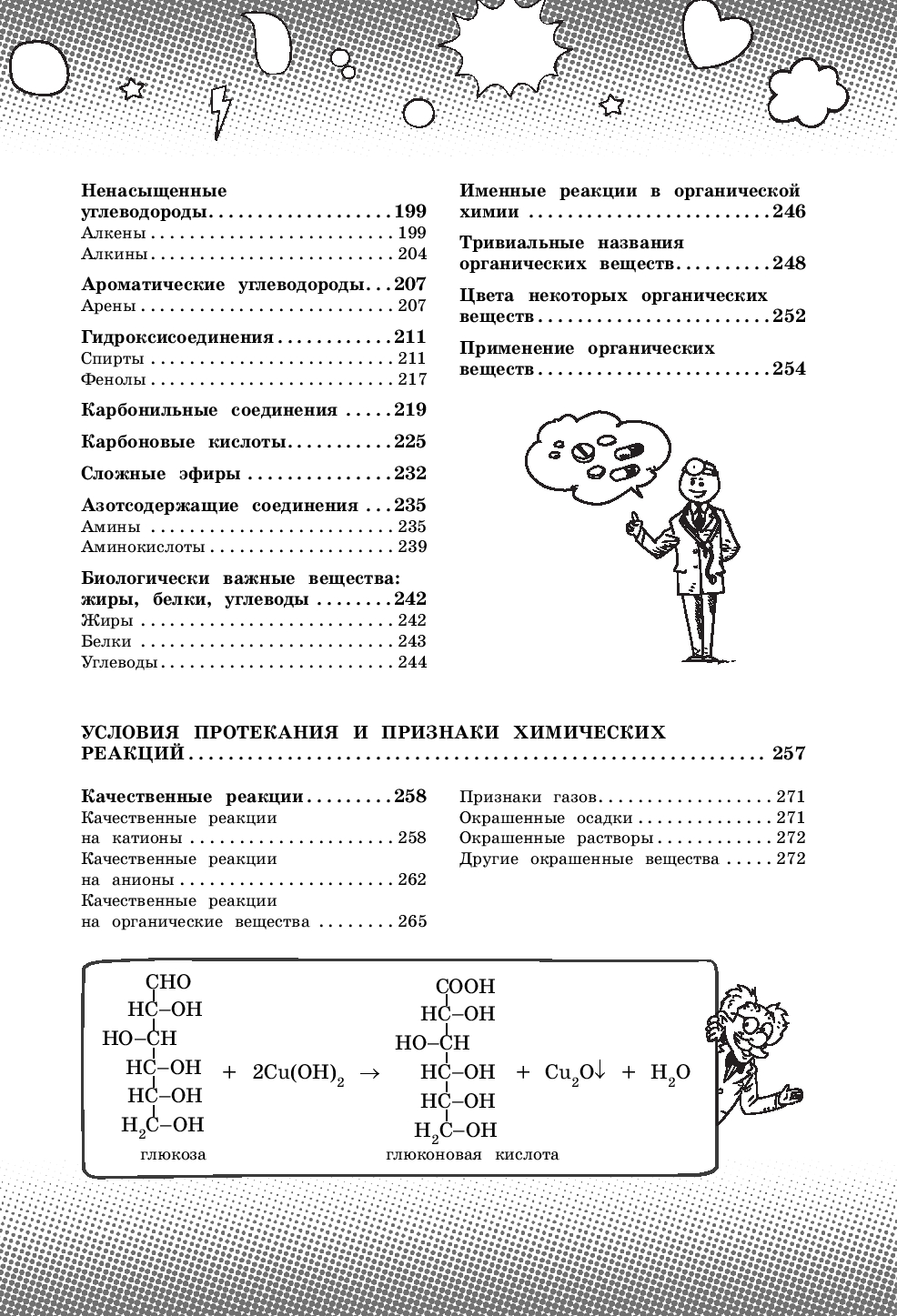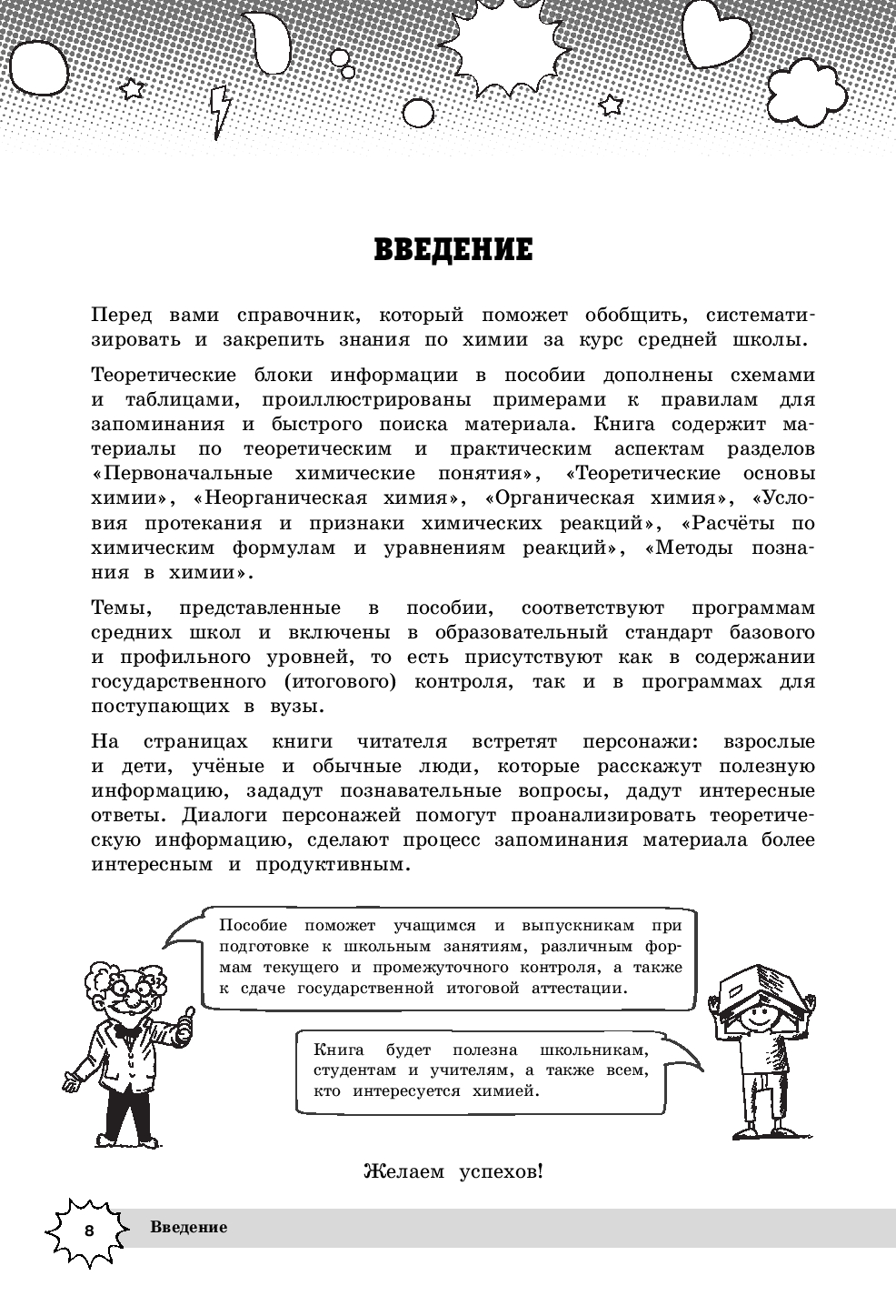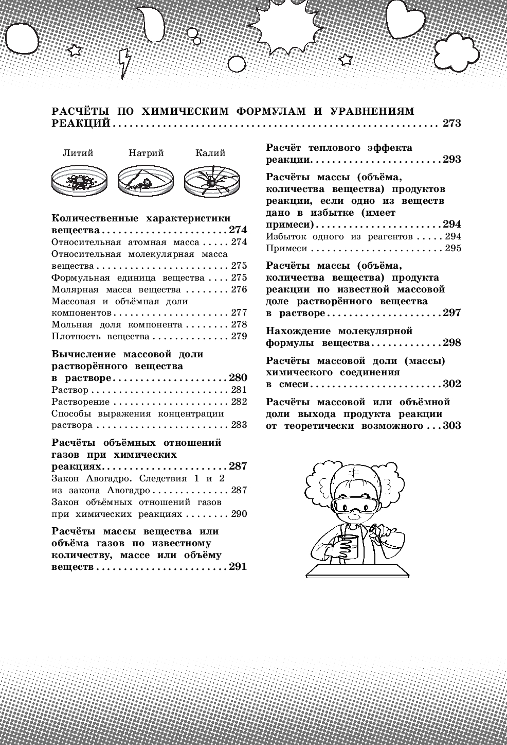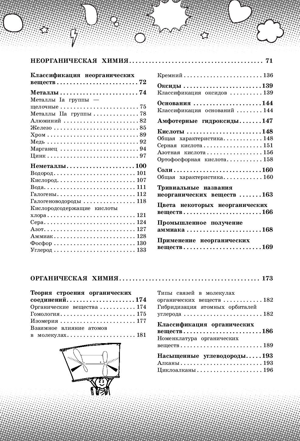 Если вы путаетесь в химических реакциях, понятиях и не можете уложить в голове весь объёмный материал за школьный курс, то это пособие идеально вам подойдёт. В книге нет длинных и скучных текстов – весь материал разбит по коротким рубрикам, таблицам и схемам, которые дополняют иллюстрации. Важная информация подаётся через вопросно-ответную форму с элементами комиксов. Такая форма изложения теории сделает обучение не только эффективным, но и интересным.