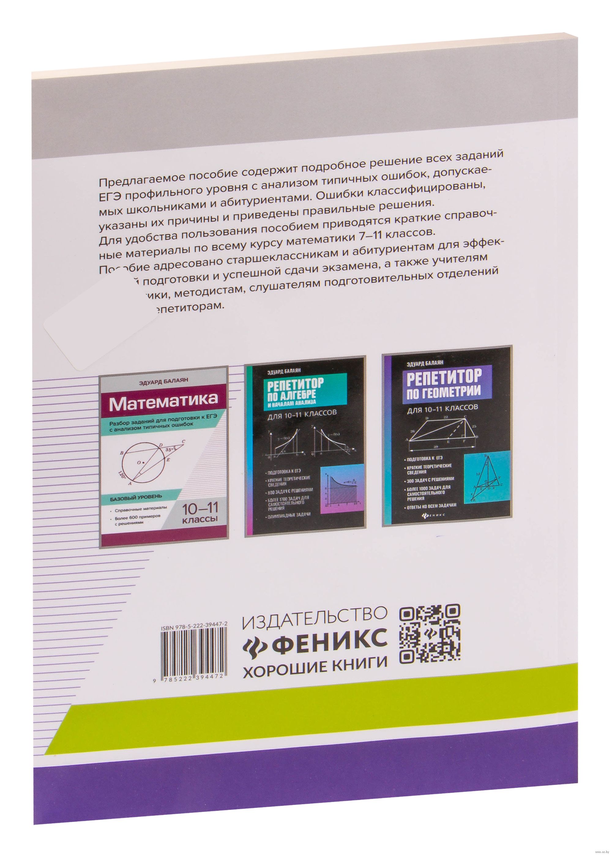 Предлагаемое пособие содержит подробное решение всех заданий ЕГЭ профильного уровня с анализом типичных ошибок, допускаемых школьниками и абитуриентами. Ошибки классифицированы, указаны их причины и приведены правильные решения.