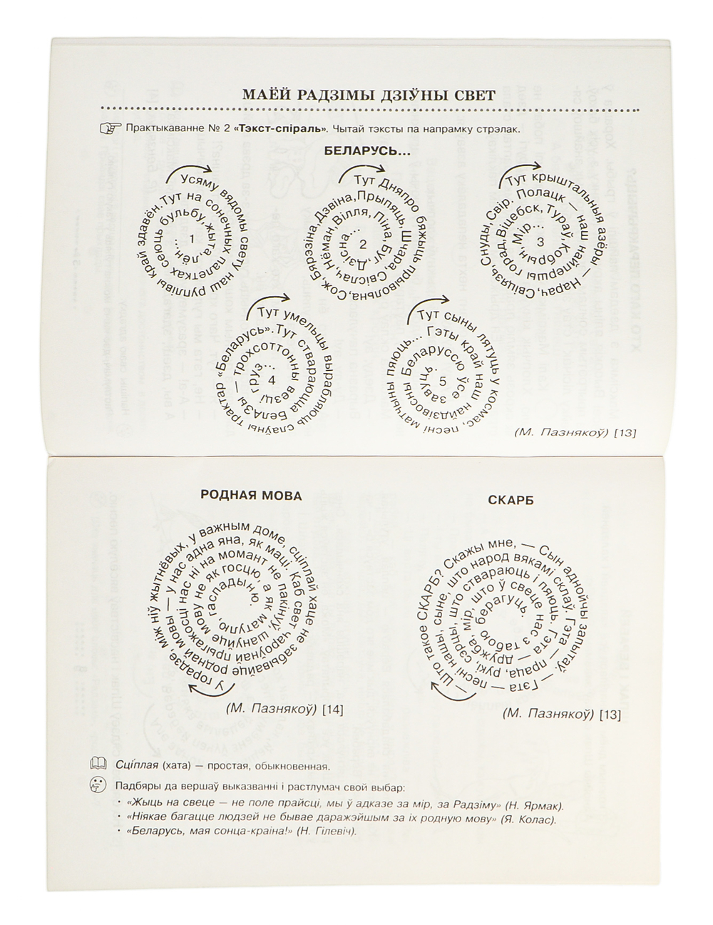 Матэрыял складаецца з 9 раздзелаў, прысвечаных асобнай тэме, яго можна выкарыстоўваць на ўроках пазакласнага чытання для арганізацыі індывідуальнай, парнай, групавой або франтальнай работы з навучэнцамі. Яго могуць паспяхова ўжываць бацькі для заняткаў з дзецьмі дома. Праца з выданнем зробіць навучанне хуткаму чытанню цікавым і займальным.