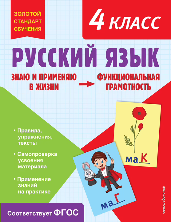 Тренажёр создан с целью научить четвероклассника применять на практике полученные знания. Каждая тема содержит задания как на самостоятельную проверку знаний, так и на их применение для решения самых разных практических задач. Выполнение заданий будет способствовать развитию не только языковой и речевой грамотности школьника, но и его функциональной грамотности.