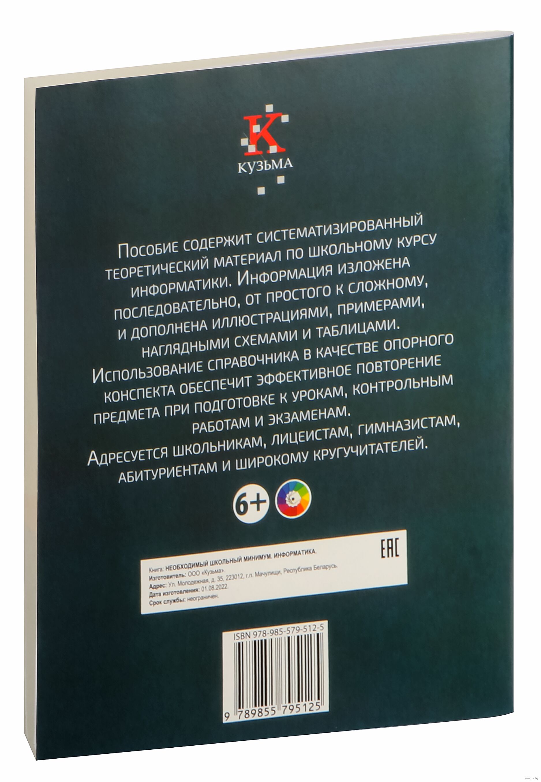Пособие содержит систематизированный теоретический материал по курсу информатики. Полноцветные таблицы и схемы, представленные в книге, помогут быстро понять и усвоить изложенную информацию. Компактность и доступность подачи материала дадут возможность быстро вспомнить изученное ранее.