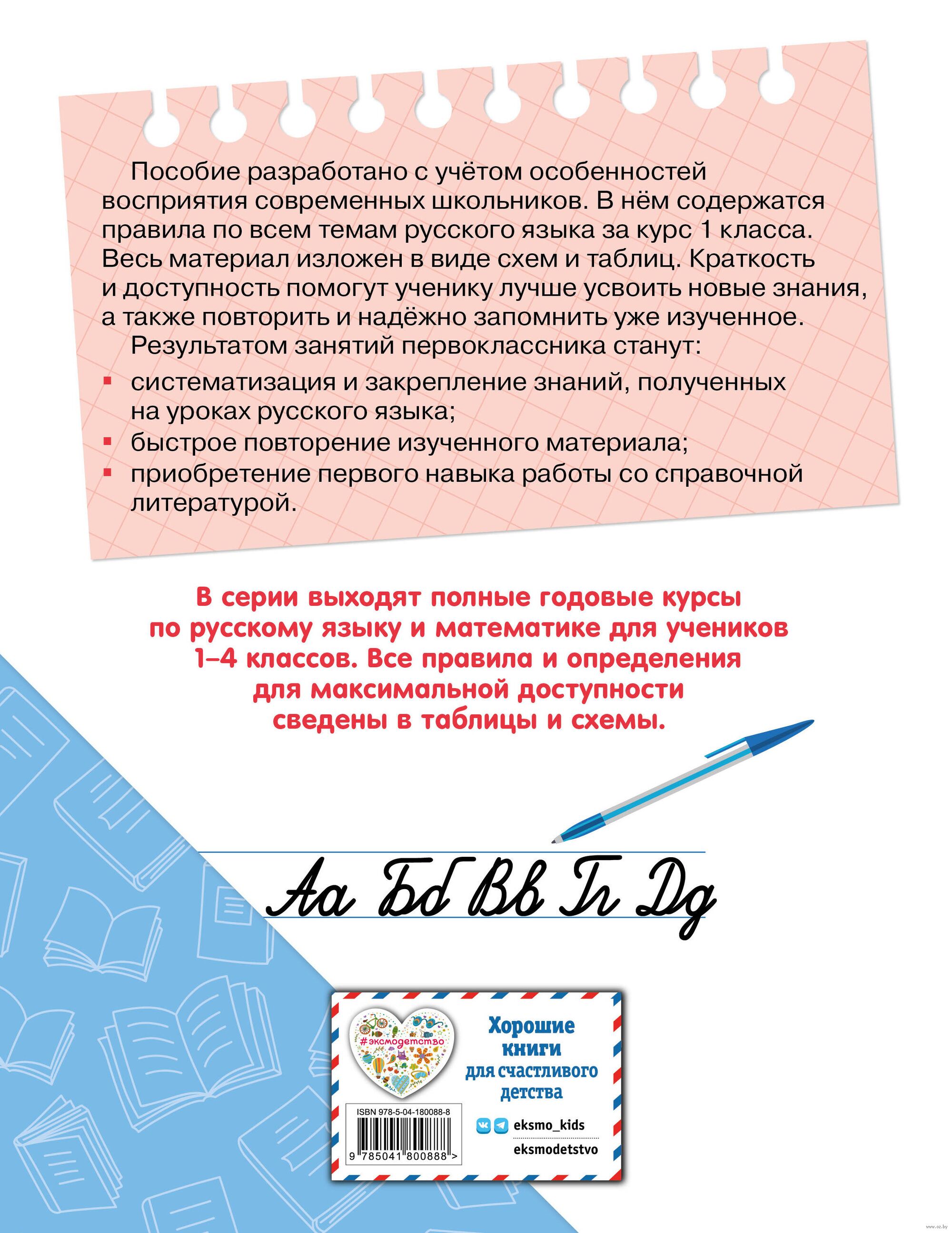 Справочники для учеников начальной школы должны быть краткими и понятными. В данном пособии предельно доступно, в виде таблиц и схем, изложен весь курс русского языка за 1 класс. Такая подача материала делает процесс поиска и запоминания информации максимально быстрым и лёгким. Современное и удобное в использовании пособие полностью соответствует всем требованиям ФГОС начального общего образования.
