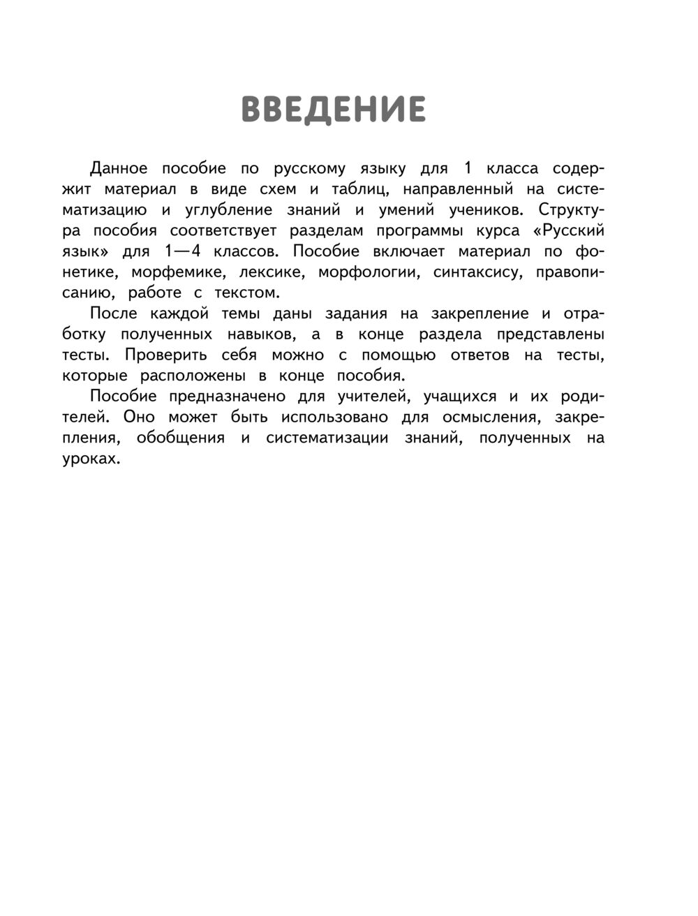 В пособии представлены все темы школьного курса русского языка за 1 класс. Пособие будет полезно для систематизации знаний учащихся, дополнительной проработки сложных тем, подготовки к самостоятельным и контрольным работам. Это особенно актуально для школьников, испытывающих трудности в освоении и запоминании больших объёмов материала. Кроме того, ученики получат первый практический опыт работы со справочной литературой – это пригодится им не только в период учёбы, но и в повседневной жизни.