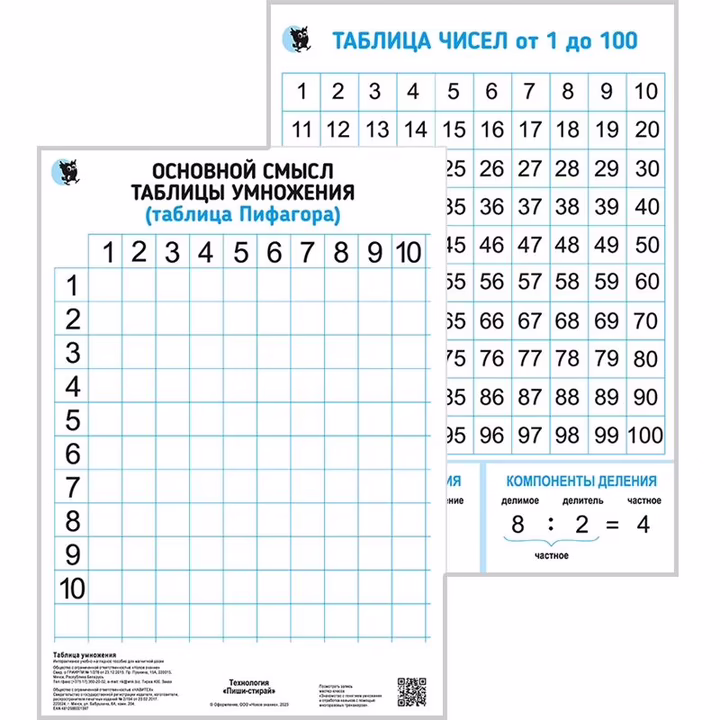 Работа с демонстрационным пособием "Таблица умножения" – эффективный практический способ изучения принципов и примеров табличного умножения и деления. Знакомство с конкретным смыслом действия умножения начинается с изучения и демонстрации таблицы Пифагора. С помощью плаката можно наглядно продемонстрировать переместительное свойство умножения, научить детей находить последовательность и симметрию таблицы умножения.