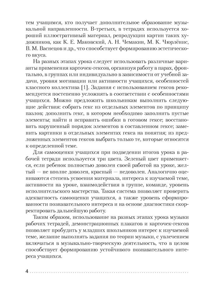 Пособие содержит методические рекомендации и разработки уроков музыки для 1-4 классов, которые соответствуют учебной программе. Представленный материал поможет педагогам в организации и проведении занятий с использованием рабочих тетрадей, демонстрационных плакатов и карточек-гексов по предмету.