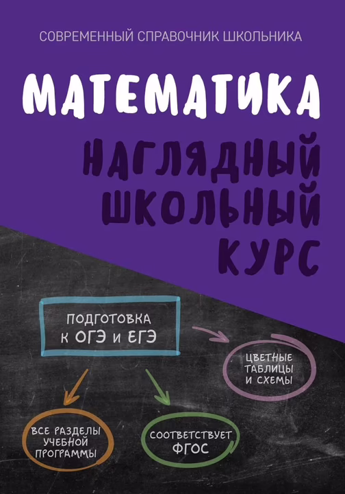 В справочнике в наглядной форме изложен школьный курс математики в объеме, проверяемом на государственной итоговой аттестации. Учебный материал представлен в виде полноцветных таблиц и схем, дополнен иллюстрациями и примерами. Издание станет незаменимым помощником при подготовке к урокам, контрольным работам, а также к ОГЭ и ЕГЭ.