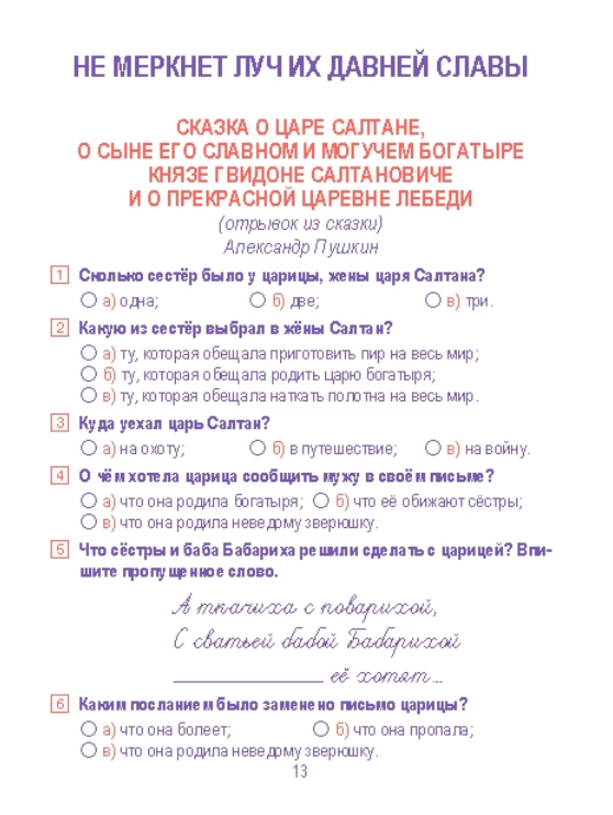 Специально подобранная система тестовых заданий и вопросов поможет ребенку лучше усвоить и понять литературное произведение, улучшить технику чтения, сформировать читательскую самостоятельность.