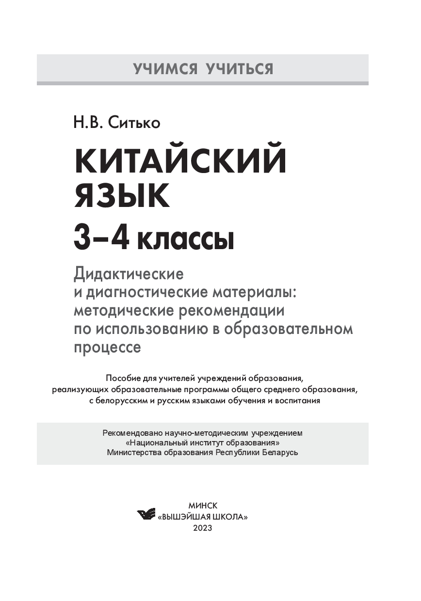 Издание содержит методические рекомендации для использования учителями в комплексе с дидактическими и диагностическими материалами по китайскому языку для учащихся 3-4 классов.