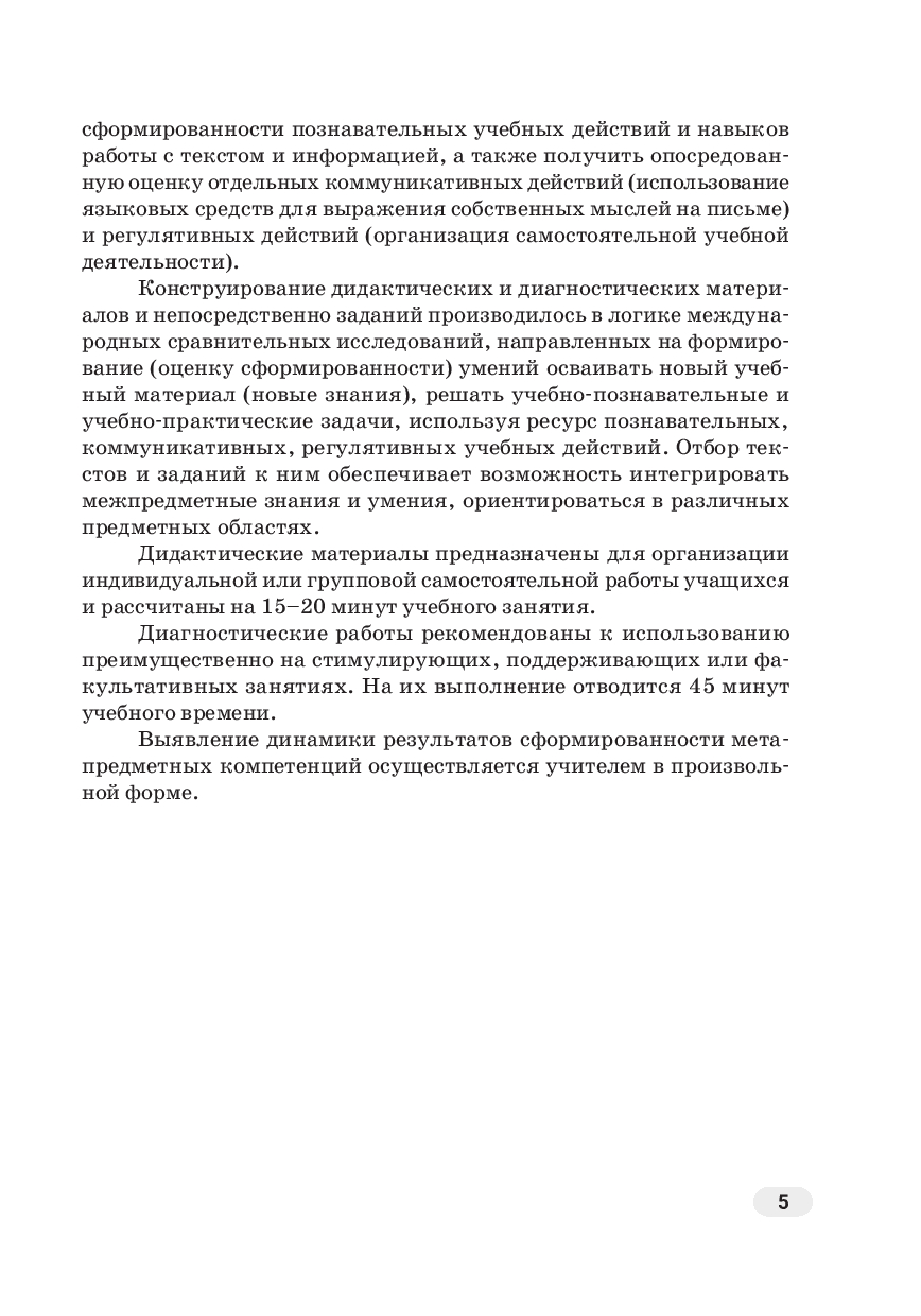 Пособие содержит методические рекомендации по использованию дидактических и диагностических материалов, их спецификации, а также шкалы оценки метапредметных умений.