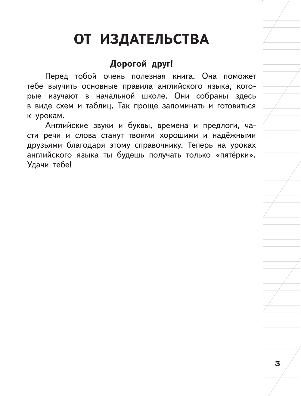 Пособие "Все правила английского языка для начальной школы в схемах и таблицах" подходит для подготовки учащихся начальной школы к самостоятельным, контрольным работам, а также к ВПР. Материал удобно структурирован по темам, которые изучают в начальных классах, поэтому им легко и удобно пользоваться. Все правила представлены в наглядных схемах и таблицах, благодаря чему школьник сможет быстро повторить пройденные темы, используя пособие как справочник, учебник или шпаргалку.