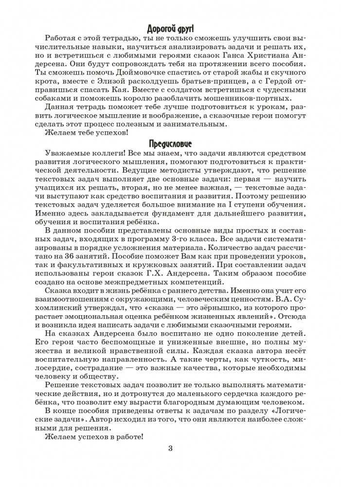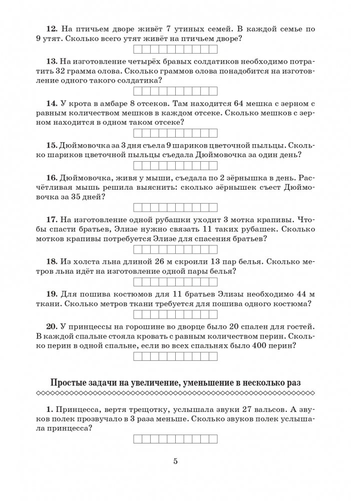 Издание содержит основные виды простых и составных задач, предусмотренных учебной программой для учащихся 3-х классов. Материал пособия направлен на отработку навыка решения типовых текстовых задач, в качестве дополнительных заданий для учащихся. Издание может быть использовано для проведения факультативных занятий и для работы на кружковых занятиях.