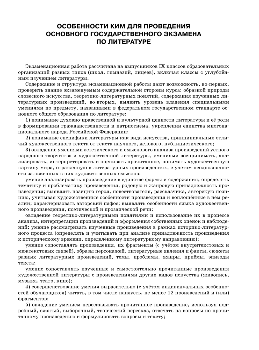 Пособие может использоваться учащимися для самоподготовки и учителями для организации текущего контроля уровня литературной образованности выпускников 9 классов и для подготовки их к сдаче основного государственного экзамена.