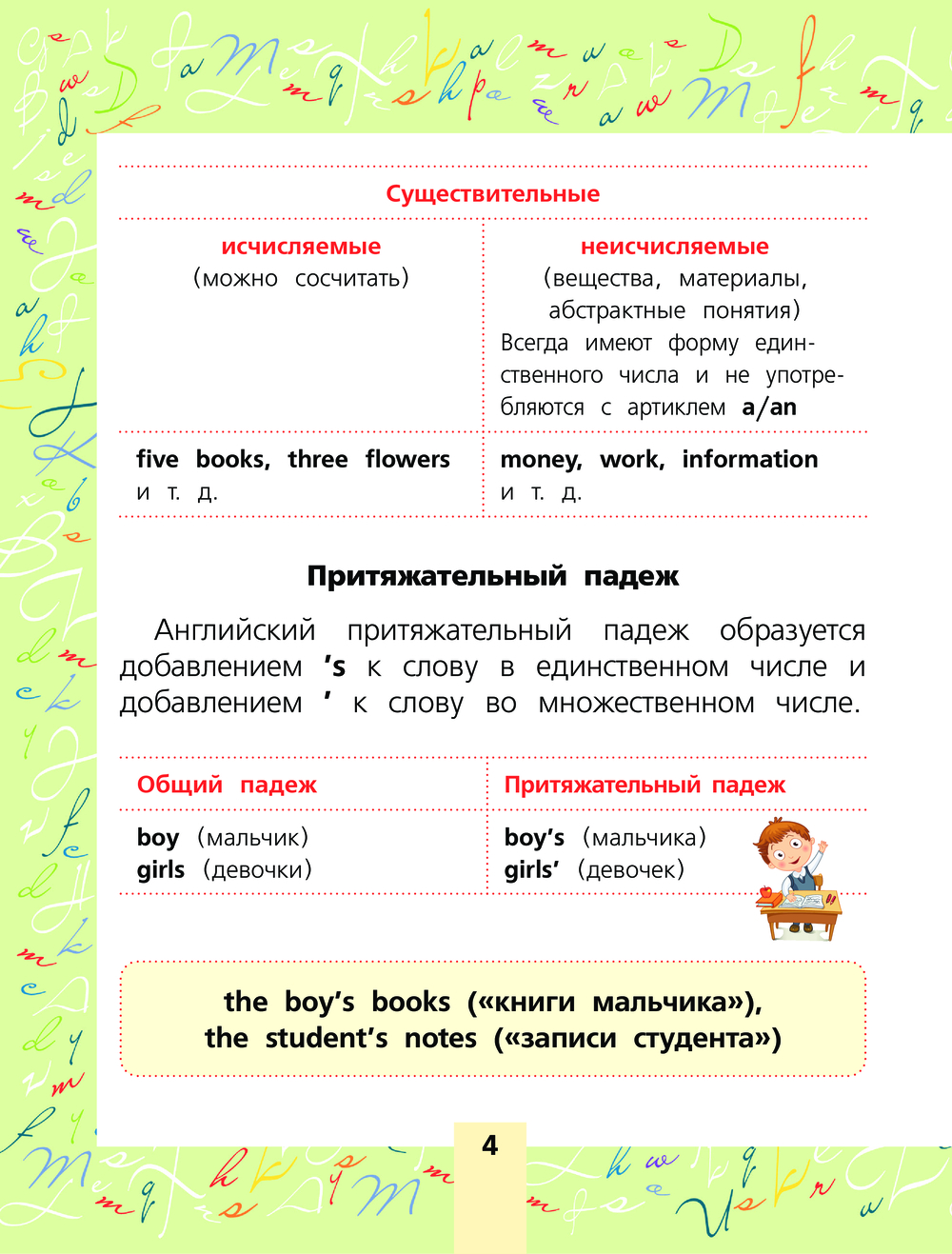 Незаменимый помощник в изучении английского языка! В этой книге представлены основные правила английской грамматики и фонетики. Все правила даны схематично и кратко, что позволяет лучше усваивать материал. В пособии в наглядной форме изложены основные правила чтения английских букв и буквосочетаний, сопровождаемые заданиями и яркими иллюстрациями. В процессе обучения школьники не только научатся правильно читать английские слова, но и познакомятся со знаками современной международной фонетической транскрипции, а также освоят тонкости грамматики.