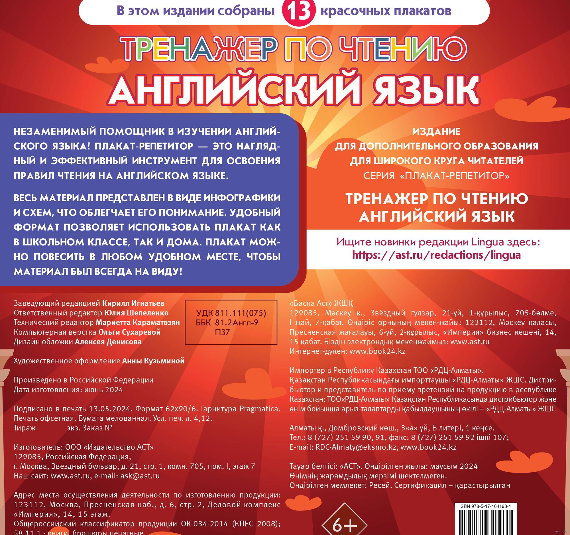 Незаменимый помощник в изучении английского языка! Плакат-репетитор – это наглядный и эффективный инструмент для освоения правил чтения на английском языке.
