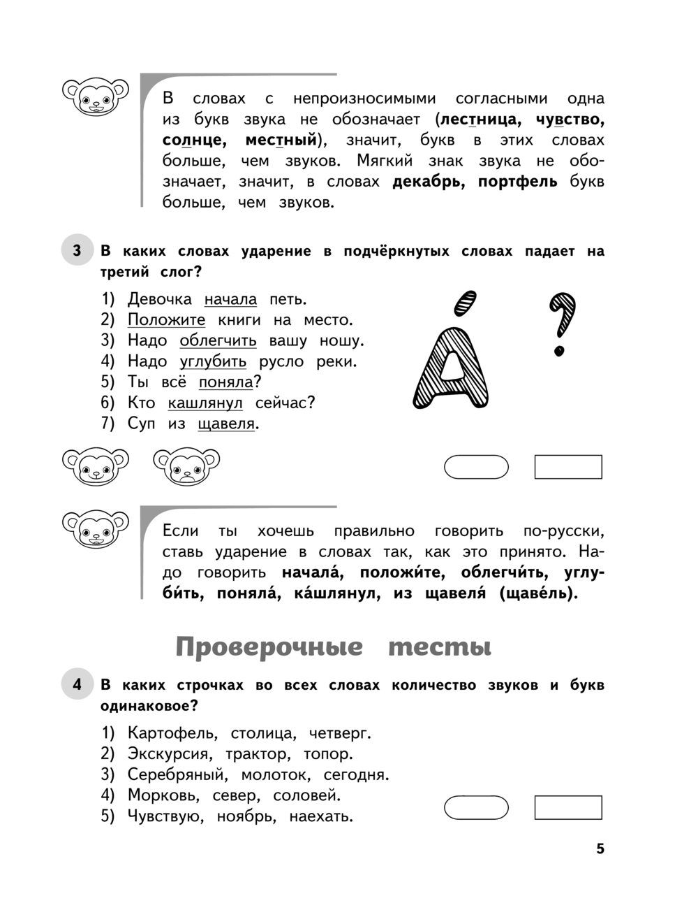 В пособие включены тесты двух типов – тренировочные и проверочные. Тренировочные тесты позволяют ученикам не только обнаружить допущенные ошибки, но и определить их причину. Для этого в пособии даны подсказки, ориентирующие на выбор нужного правила и дающие прямые указания на верный способ решения лингвистической задачи. Проверочные тесты помогают выяснить степень усвоения материала по всем основным разделам русского языка за курс 3 класса.
