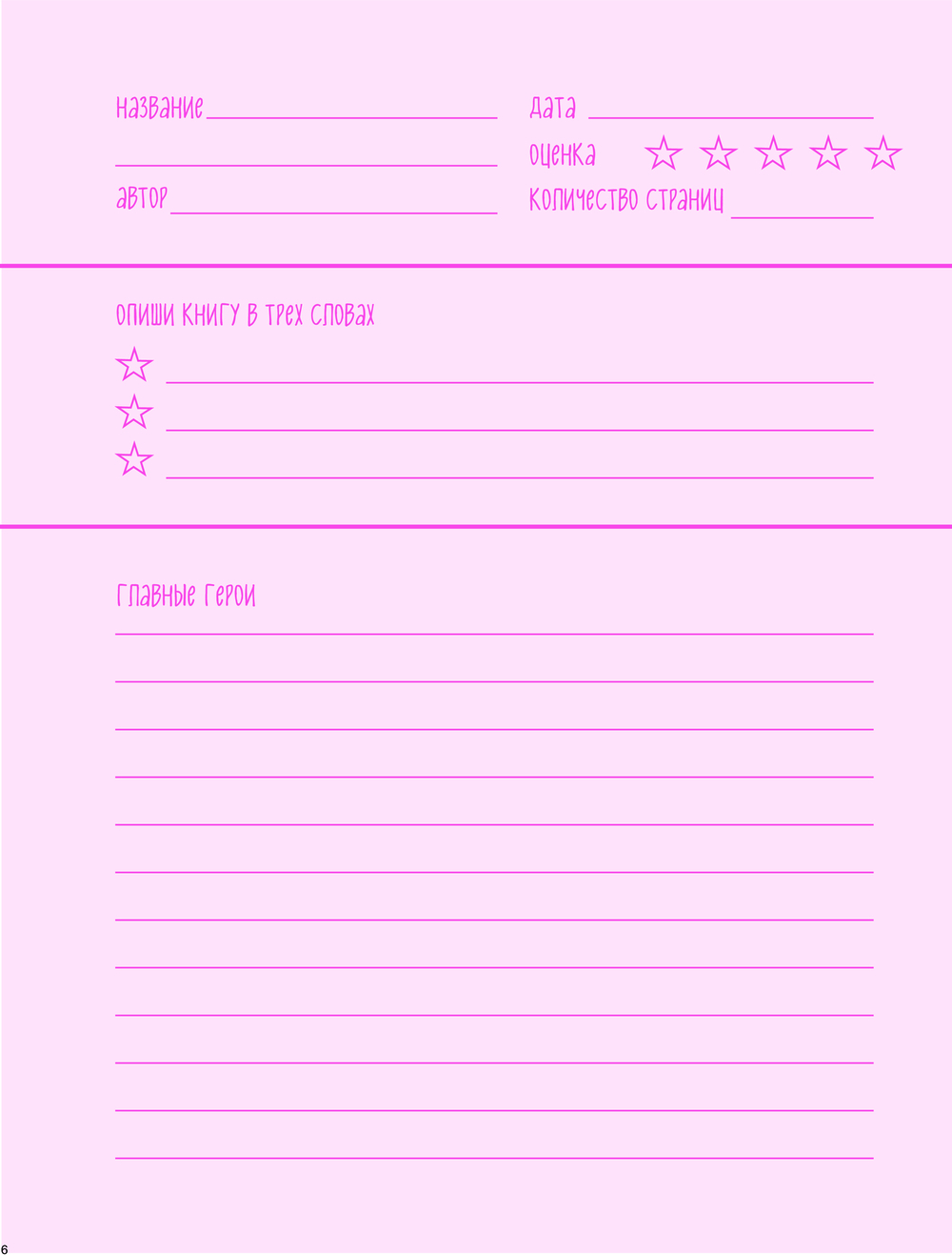 Записывайте в него все свои впечатления и эмоции о прочитанных книгах, следите за прогрессом чтения, составляйте списки любимых книг и дайте волю своей фантазии – придумывайте продолжение понравившихся историй!