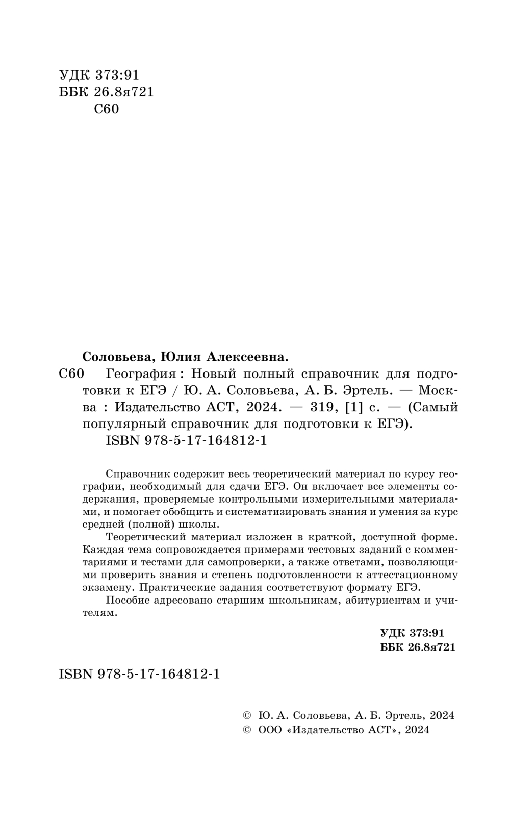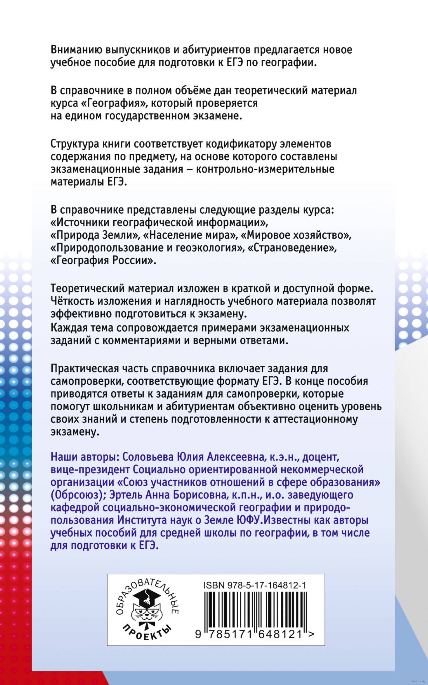 Справочник, адресованный выпускникам средней школы и абитуриентам, содержит весь теоретический материал курса географии, который проверяется на едином государственном экзамене.
