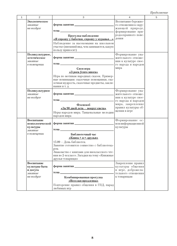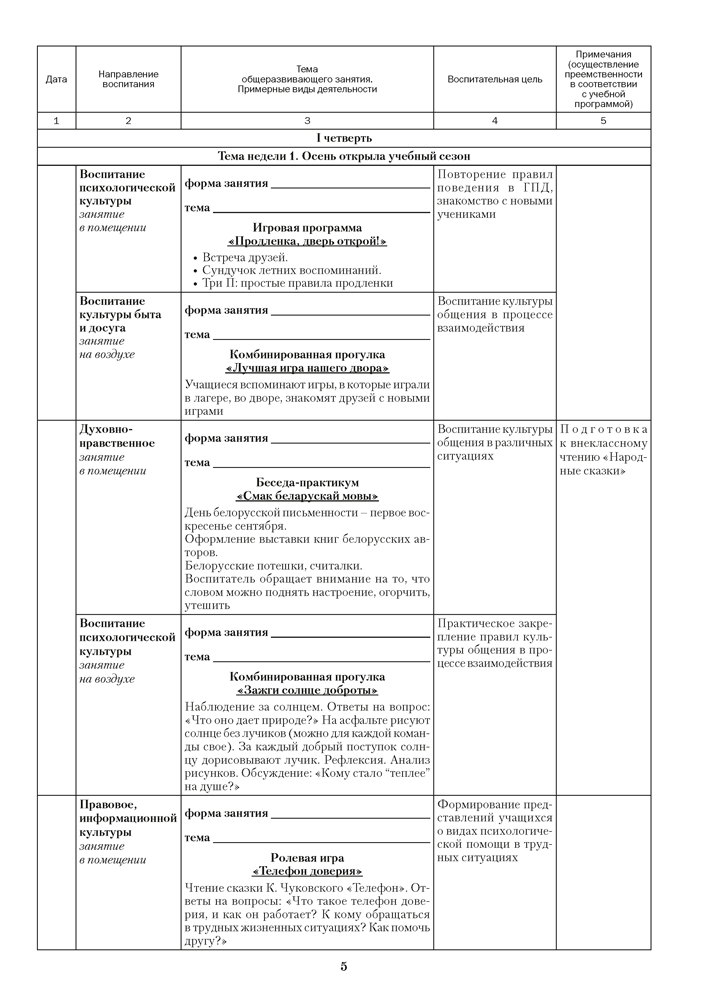 Примерное календарно-тематическое планирование составлено с учетом требований действующих учебных программ для 2 класса учреждений общего среднего образования с опорой на календарь государственных праздников и праздничных дат. Использование пособия поможет воспитателям групп продленного дня успешно организовать работу с детьми в помещении и на воздухе.