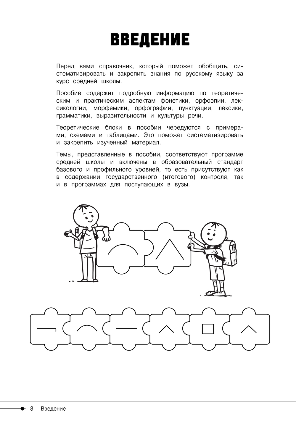 Пособие содержит подробную информацию по теоретическим и практическим аспектам фонетики, орфоэпии, лексикологии, морфемики, орфографии, пунктуации, лексики, грамматики, выразительности и культуры речи. Теоретические блоки сопровождаются примерами, схемами и таблицами для лучшей систематизации знаний и усвоения материала.
