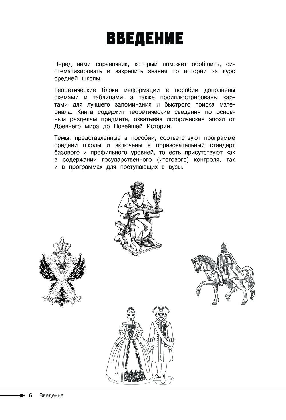 Пособие содержит подробную информацию по разделам предмета, охватывая исторические эпохи от Древнего мира до Новейшей Истории. Теоретические блоки сопровождаются иллюстрациями, схемами и таблицами для лучшей систематизации знаний и усвоения материала.