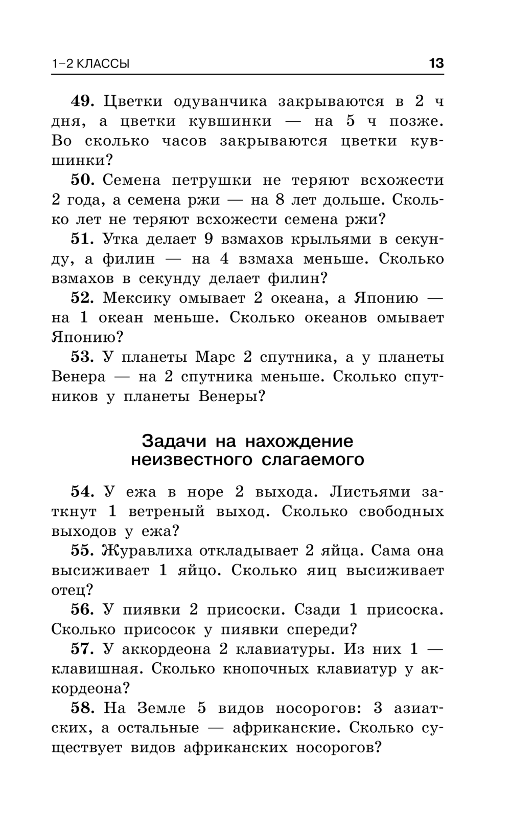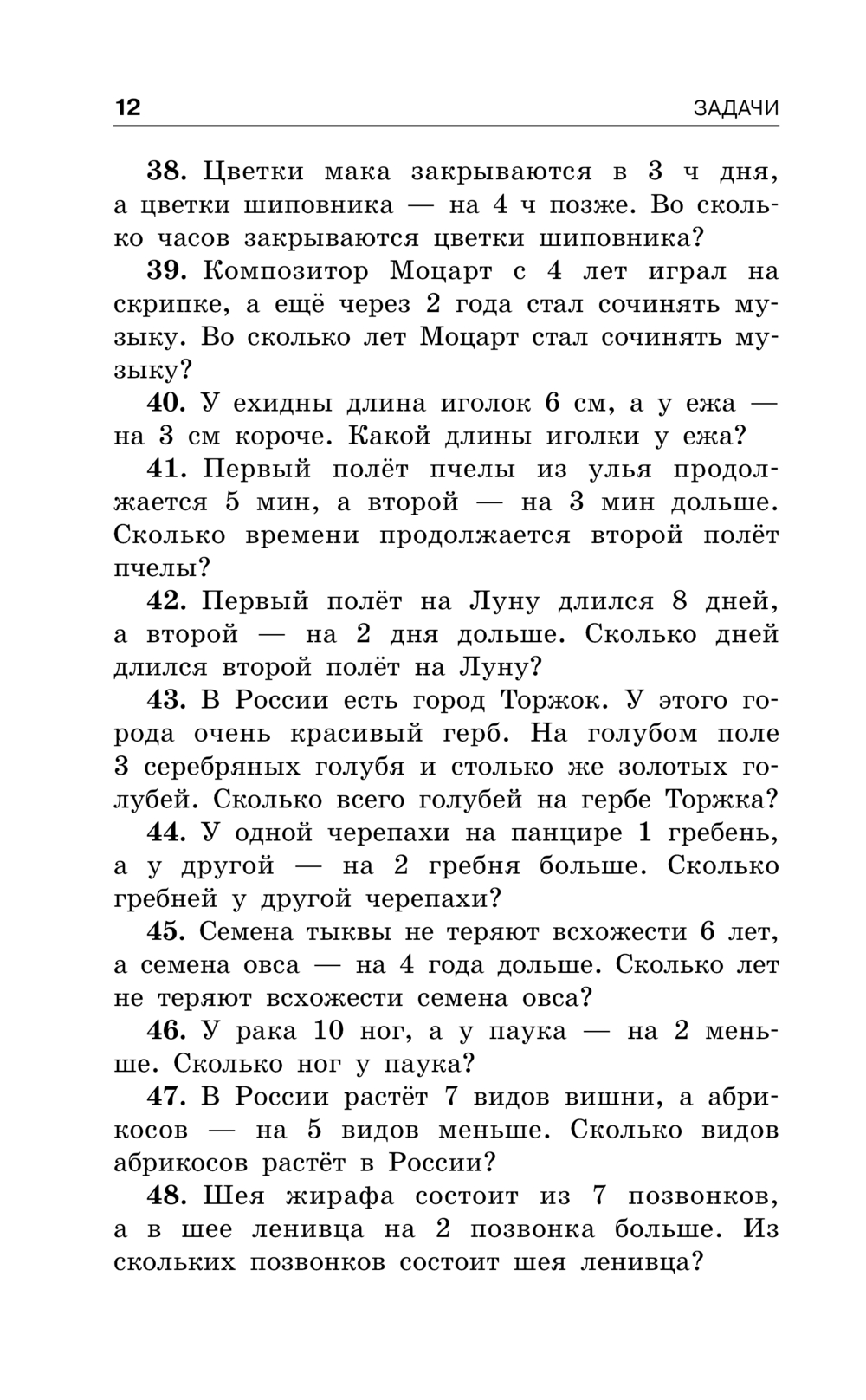 Сборник содержит задачи на все темы курса математики начальной школы, решая которые ребёнок знакомится с интересными фактами истории, узнаёт много любопытного из жизни животных, растений и явлениях природы.