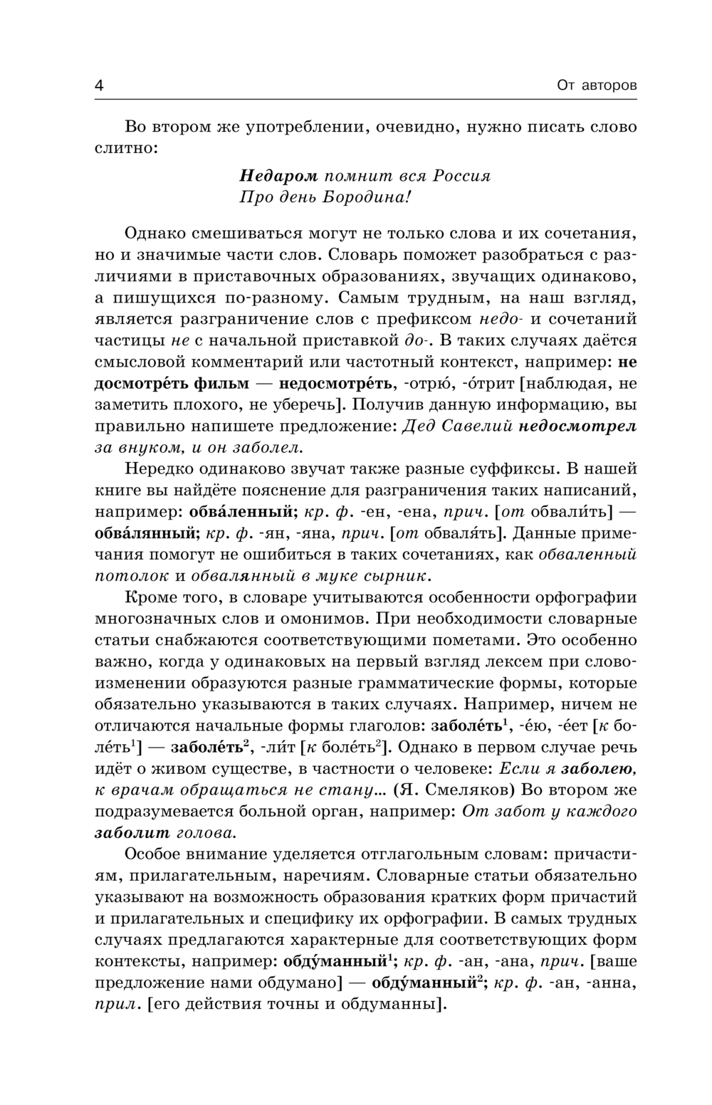 Орфографический словарь русского языка содержит более 20 000 единиц (слов и словосочетаний) с необходимой грамматической информацией и ударением. Представлены характерные для соответствующих форм контексты, исходя из которых удобно определиться с выбором нужного слова.