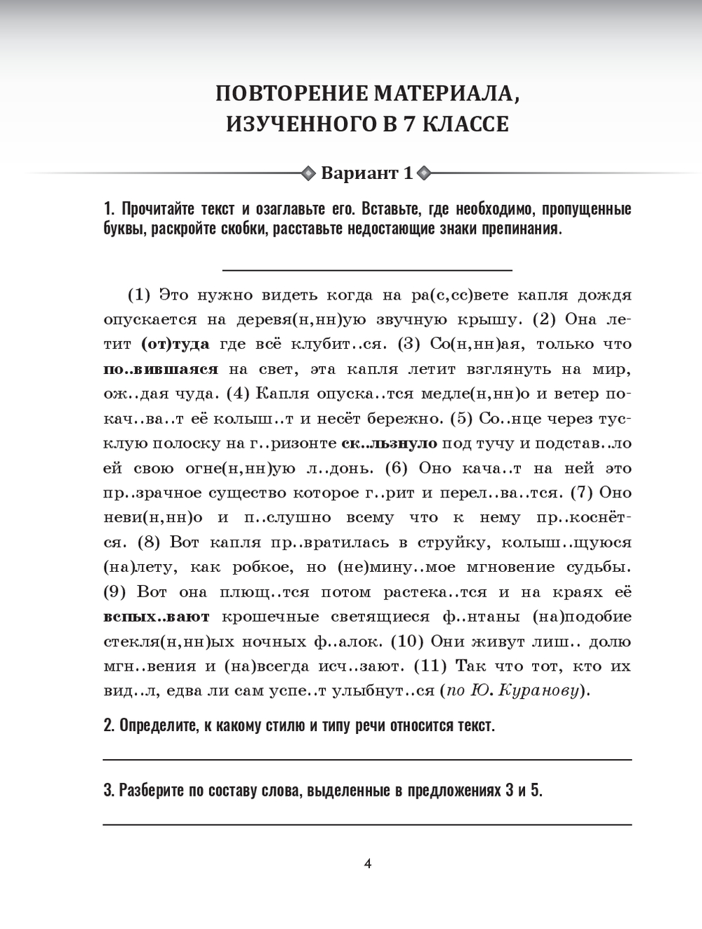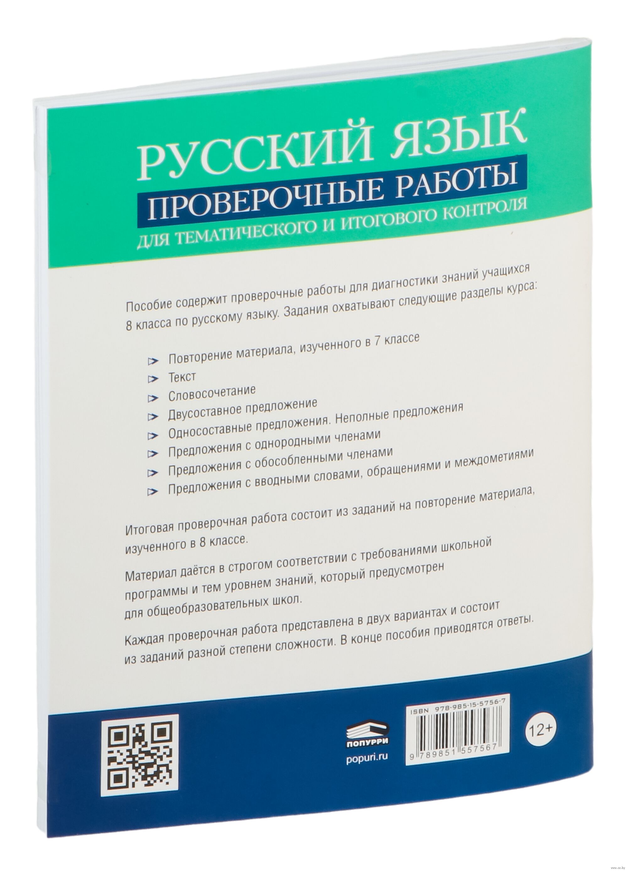 Итоговая проверочная работа состоит из заданий на повторение материала, изученного в 8 классе. Материал даётся в строгом соответствии с требованиями школьной программы и тем уровнем знаний, который предусмотрен для общеобразовательных школ. Каждая проверочная работа представлена в двух вариантах и состоит из заданий разной степени сложности. В конце пособия приводятся ответы.
