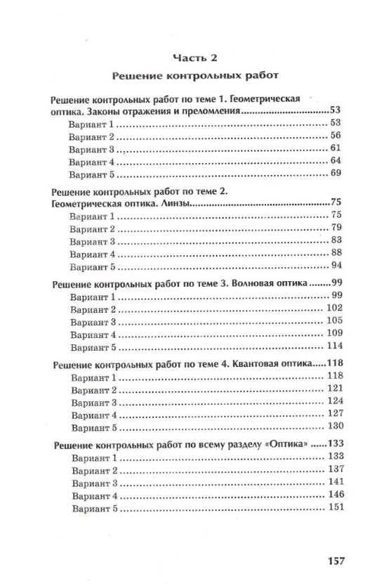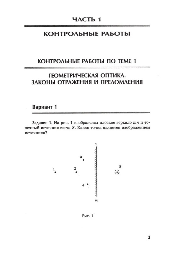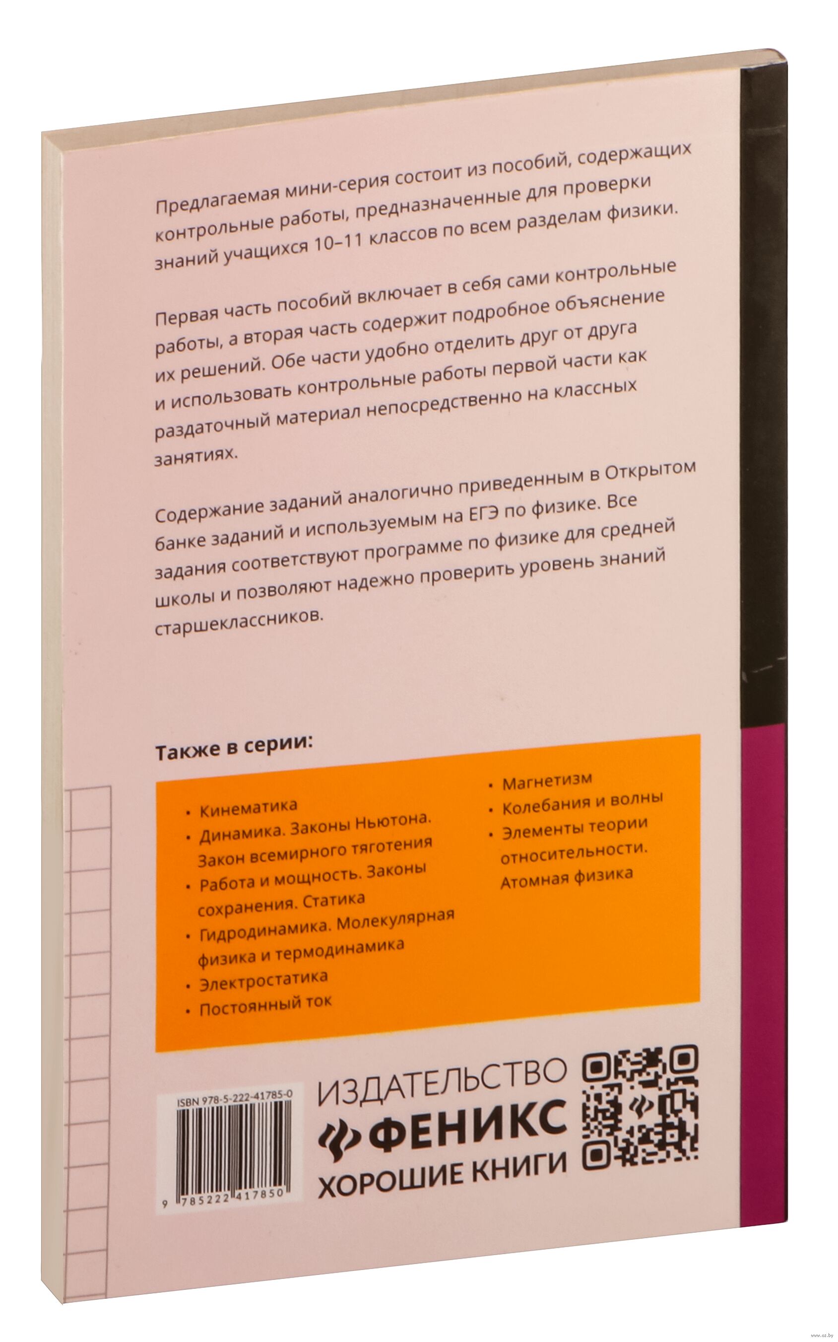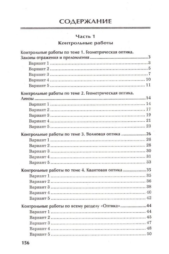Каждая из тем этого раздела включает в себя 5 контрольных работ, состоящих из 10 заданий разного уровня трудности. Их содержание аналогично приведенным в Открытом банке заданий и используемым на ЕГЭ по физике. Если уроки по физике спаренные, как это имеет место в наукоемких лицеях и гимназиях естественно-научного профиля, то учитель может предлагать учащимся решить контрольную работу полностью, а на обычном 45-минутном уроке достаточно решения половины заданий по выбору учителя. Все задания соответствуют программе по физике для средней школы и способны надежно проверить уровень знаний старшеклассников.
