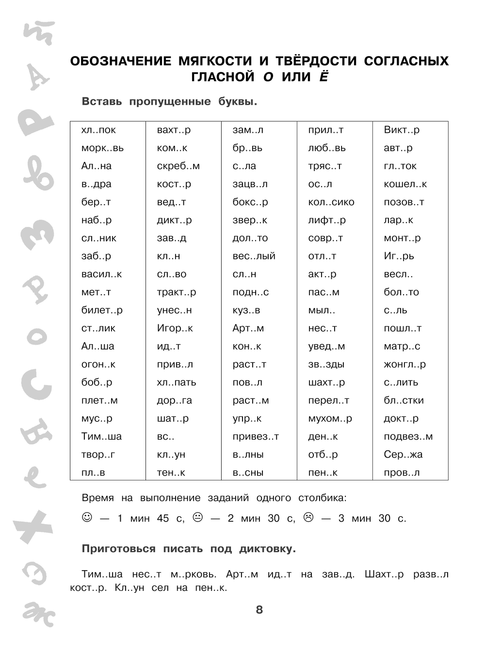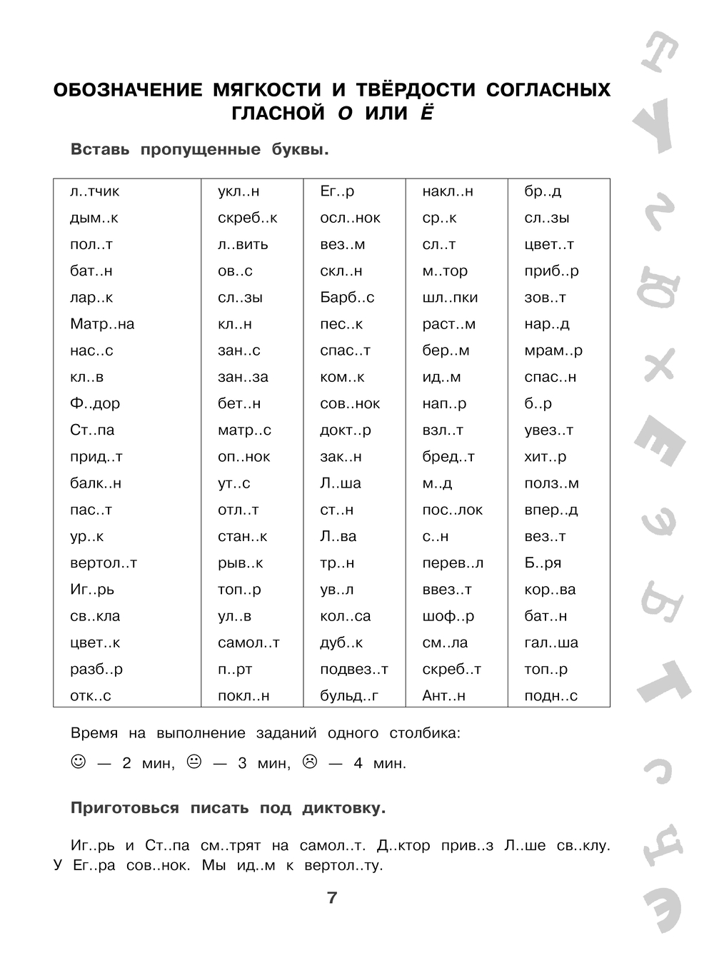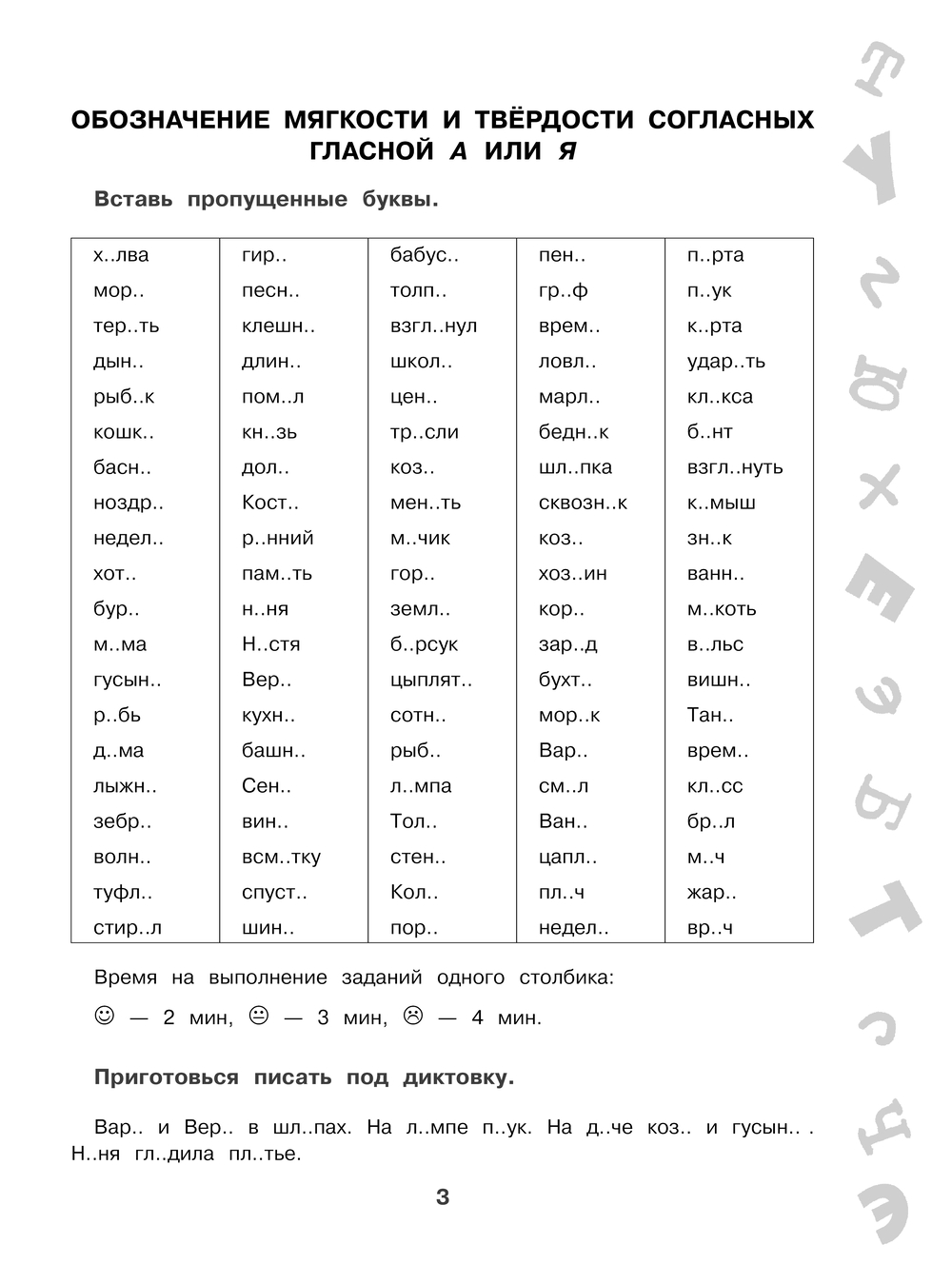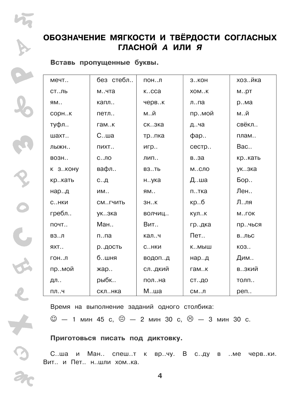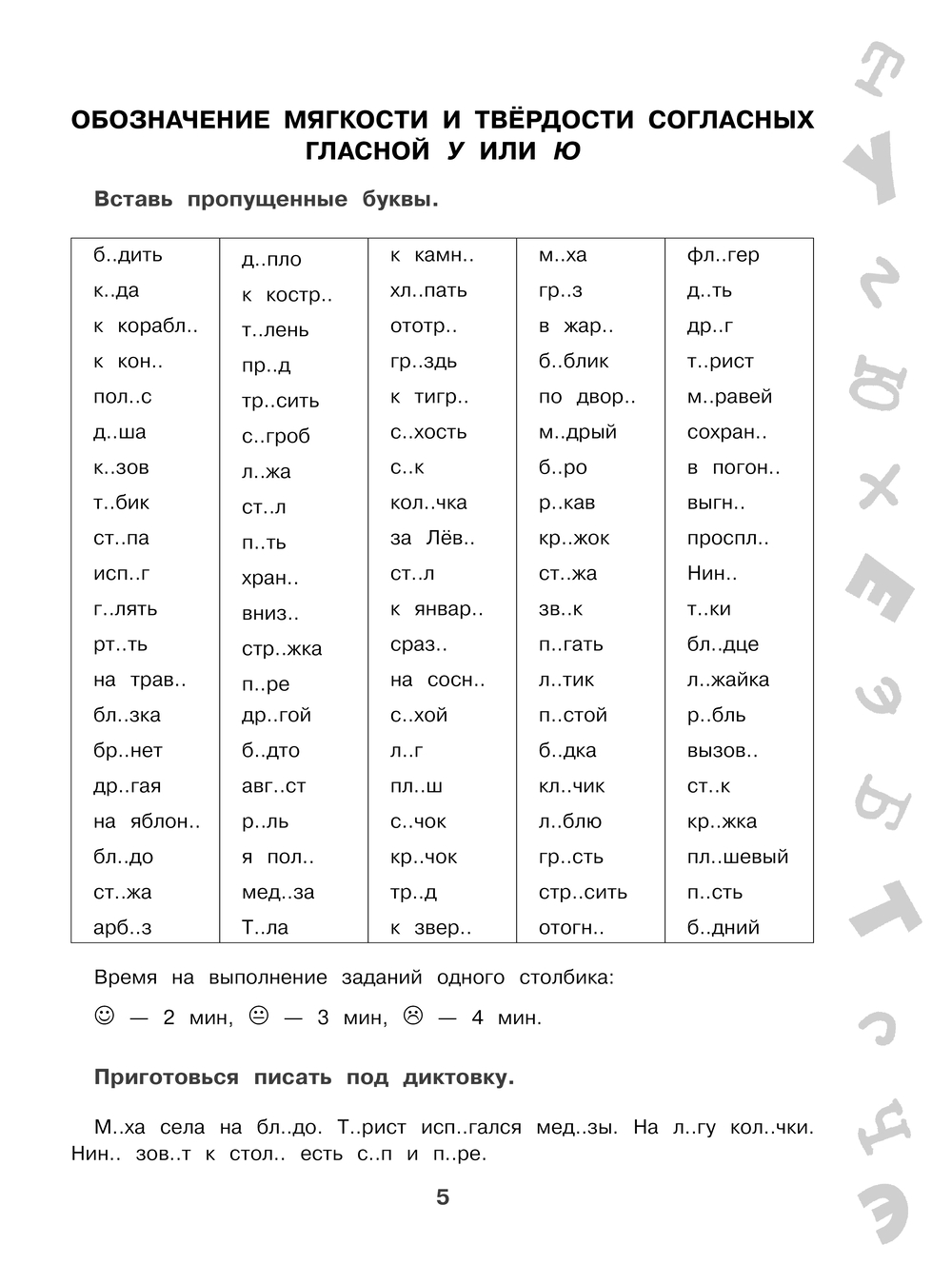 В пособие вошли задания на все орфограммы и правила, которые помогут ребёнку научиться писать грамотно и обеспечат более глубокое усвоение материала. Ребёнок будет не только списывать текст без ошибок и вставлять пропущенную букву или знак, но и найдёт ошибки в словах, выполнит задания на время, объяснит орфограммы в диктанте, повторит правила и словарные слова, выполнит тесты.