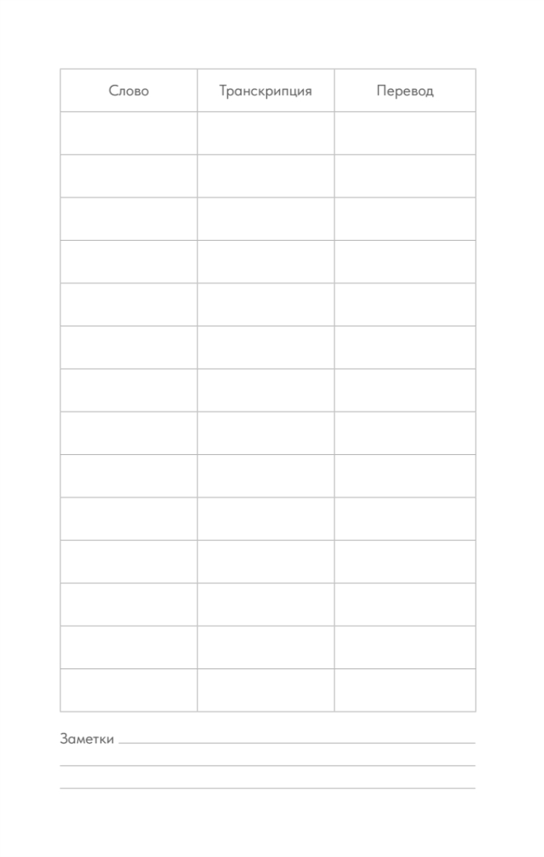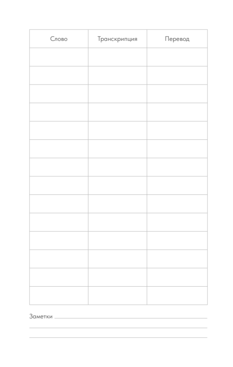 Слова – ключ к пониманию языка, и наш блокнот станет отличным подспорьем для их изучения. Подарите себе возможность говорить свободно. Бросьте себе вызов, и результат вас удивит.