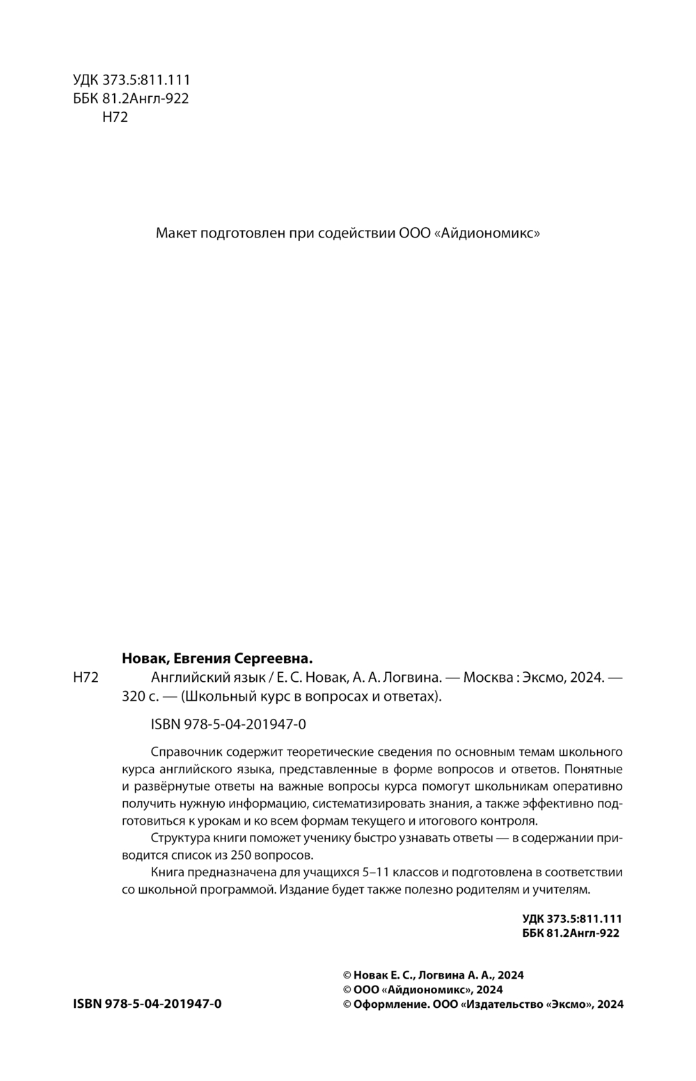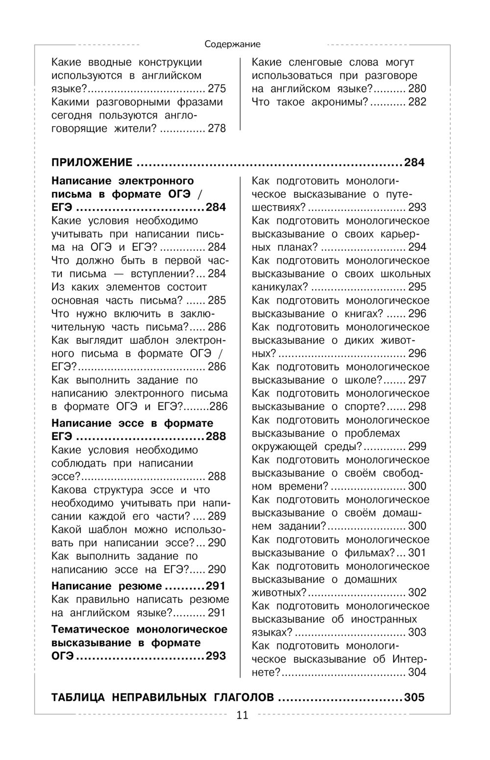 Справочник содержит теоретические сведения по основным темам школьного курса английского языка, представленные в форме вопросов и ответов. Понятные и развёрнутые ответы на важные вопросы курса помогут школьникам оперативно получить нужную информацию, систематизировать знания, а также эффективно подготовиться к урокам и ко всем формам текущего и итогового контроля.
