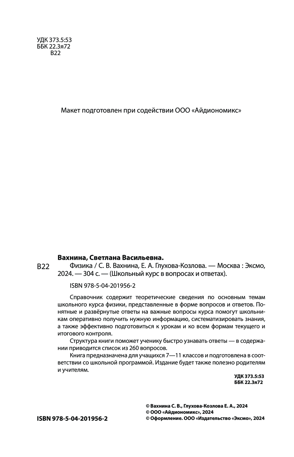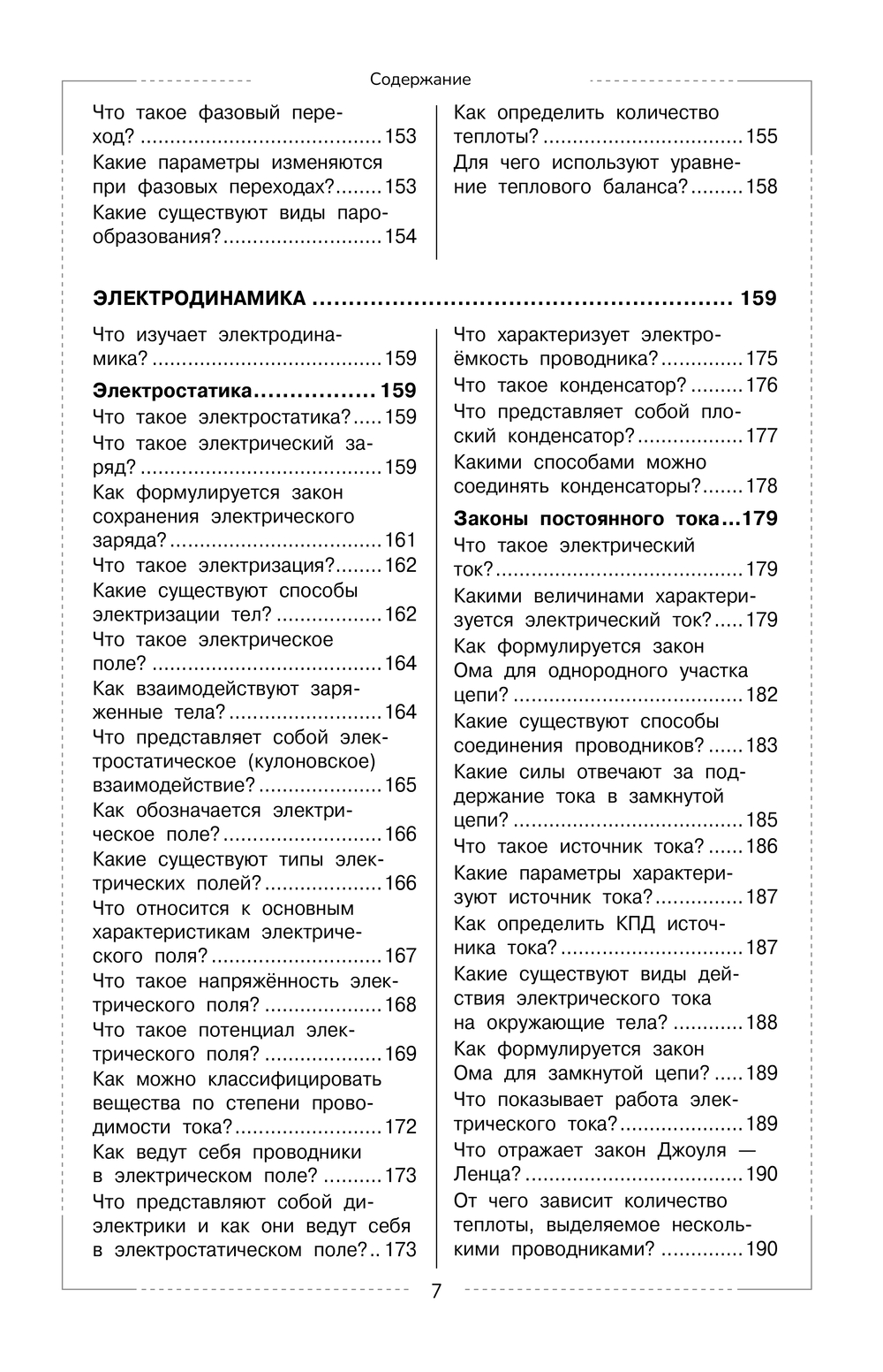 Справочник содержит теоретические сведения по основным темам школьного курса физики, представленные в форме вопросов и ответов. Понятные и развёрнутые ответы на важные вопросы курса помогут школьникам оперативно получить нужную информацию, систематизировать знания, а также эффективно подготовиться к урокам и ко всем формам текущего и итогового контроля.