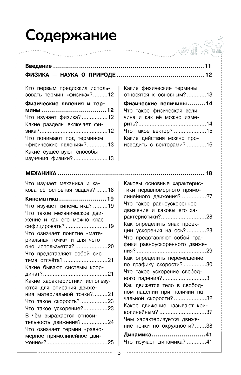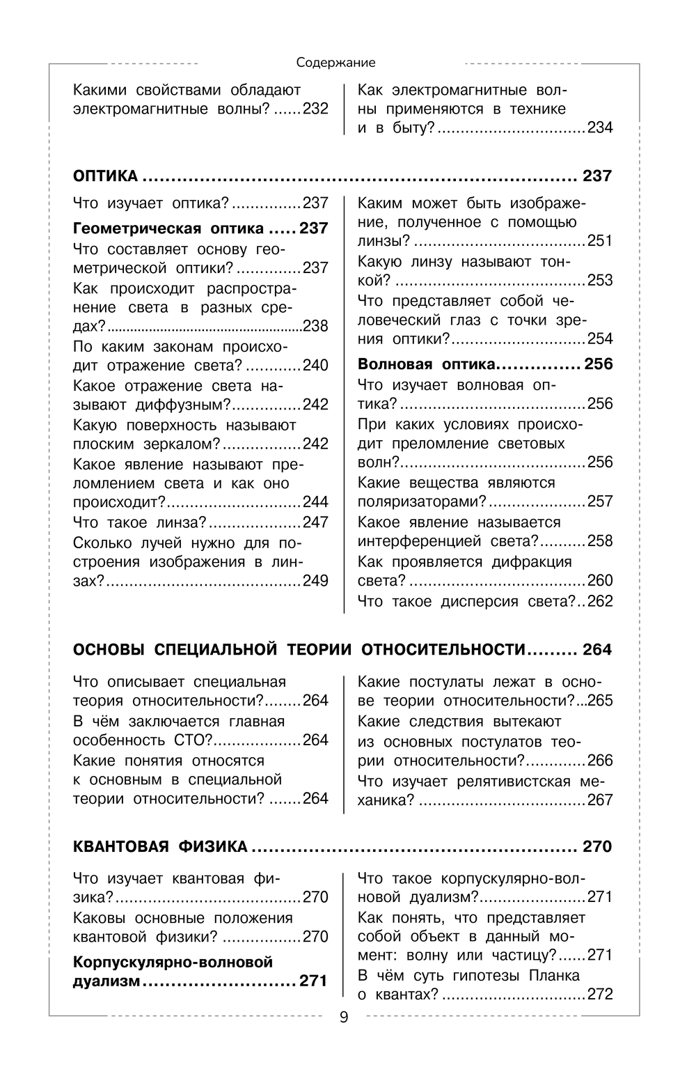 Структура книги поможет ученику быстро узнавать ответы – в содержании приводится список из 260 вопросов.