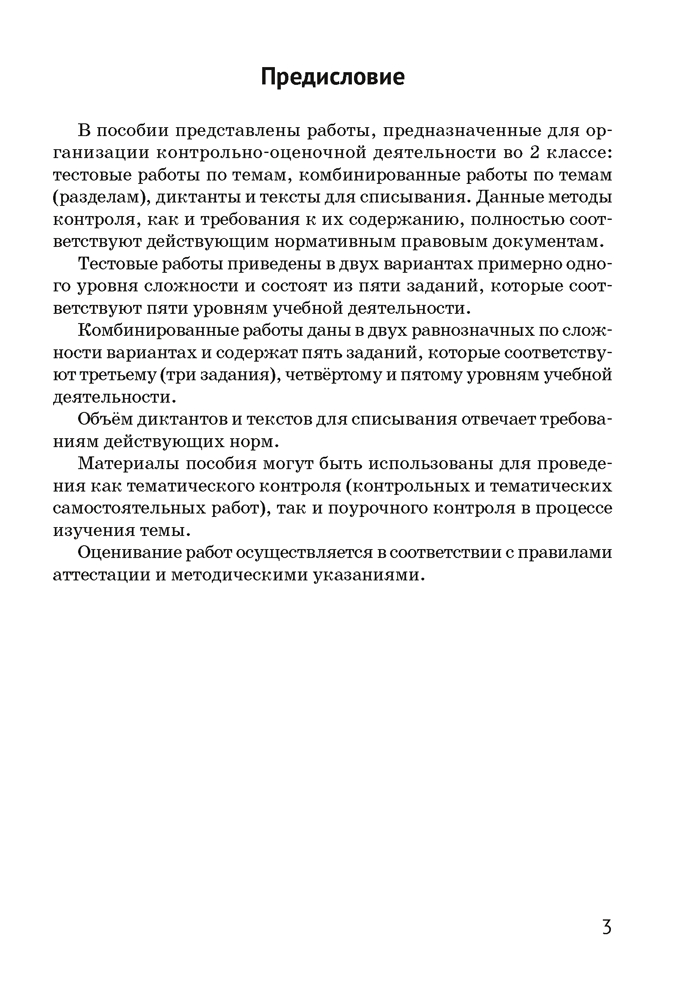 Пособие содержит материалы для организации контрольно-оценочной деятельности учащихся 2 класса: тестовые и комбинированные работы, диктанты, тексты для списывания. Предложенные задания могут быть использованы для проведения контрольных работ или во время изучения темы.