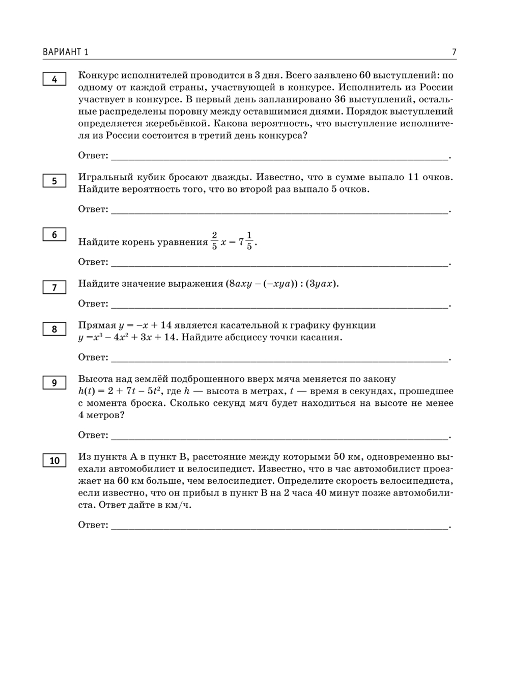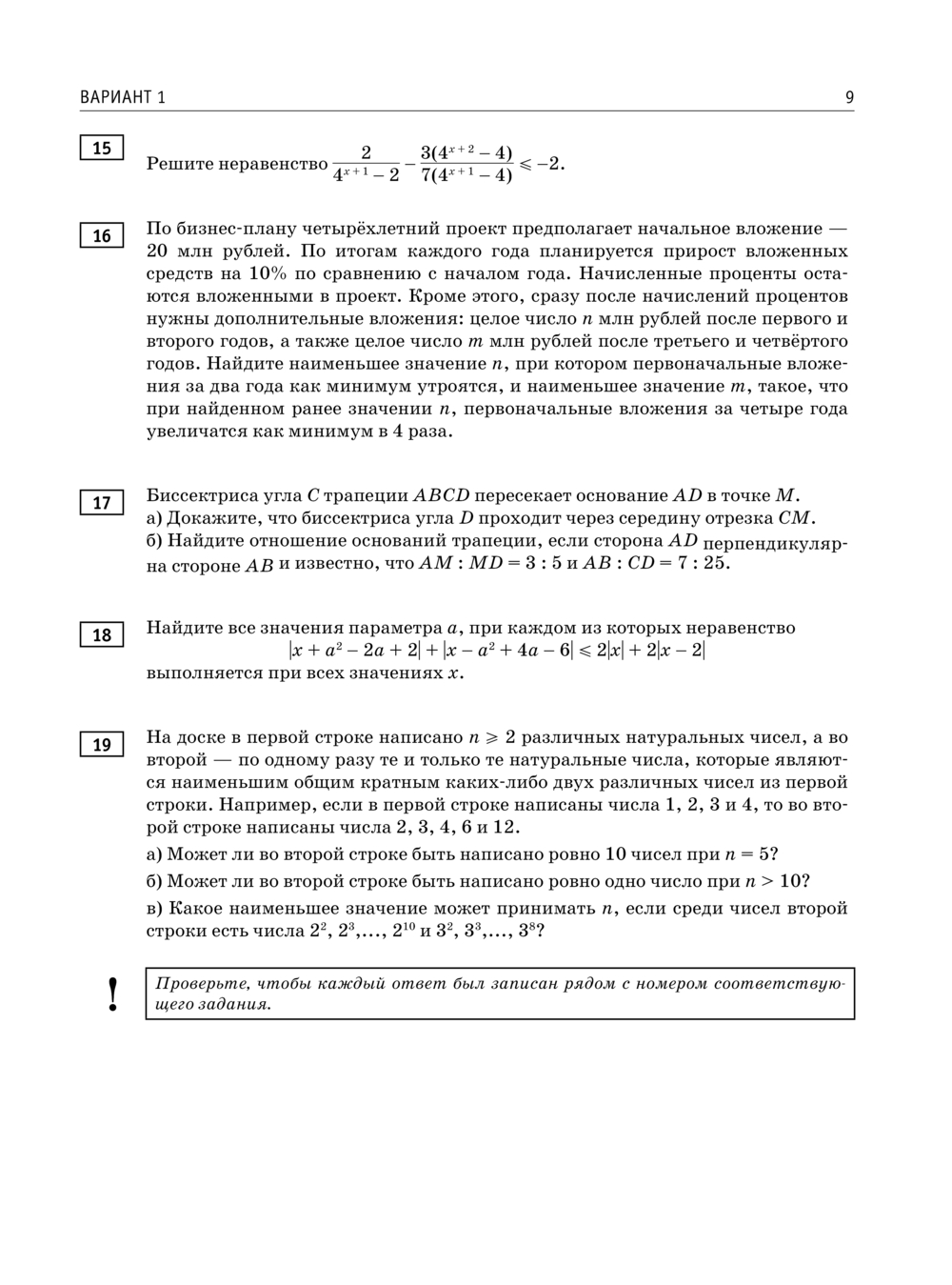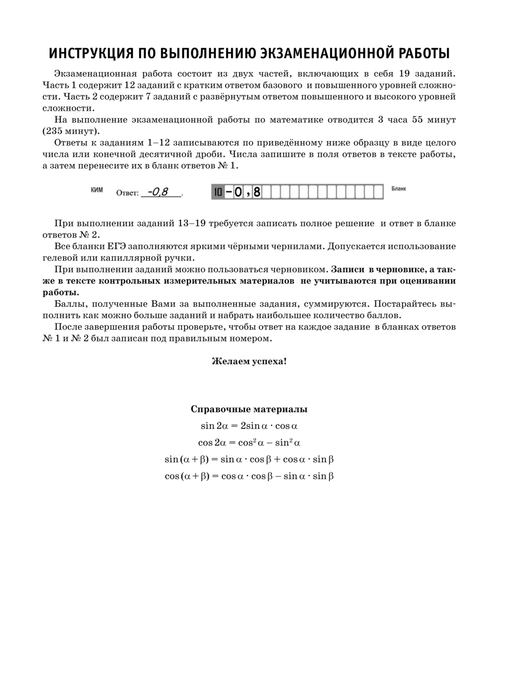 Пособие содержит 20 тренировочных вариантов экзаменационных работ, составленных в соответствии с демонстрационным вариантом и спецификацией 2025 года, и включает задания разных типов и уровней сложности. Для вашего удобства после каждого варианта дан образец экзаменационного бланка для записи ответов.