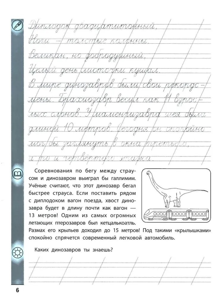 "Тренажёр предназначен для комплексного развития разных практических навыков и умений ученика начальной школы и соответствует ФГОС. Цель пособия – закрепить навыки чтения и письма, способствовать выработке красивого почерка, развить кругозор и дать новые знания в формате небольших увлекательных текстов.