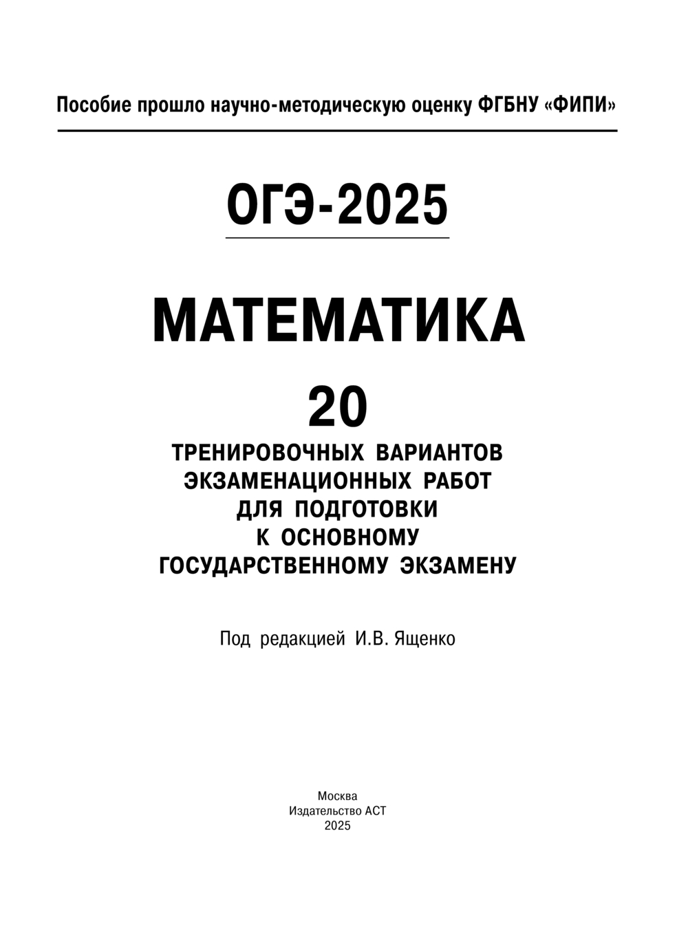 Сборник содержит 20 тренировочных вариантов экзаменационных работ, составленных в соответствии с демонстрационным вариантом и спецификацией 2025 года. Для вашего удобства в конце каждого варианта размещены образцы экзаменационных бланков для записи ответов.