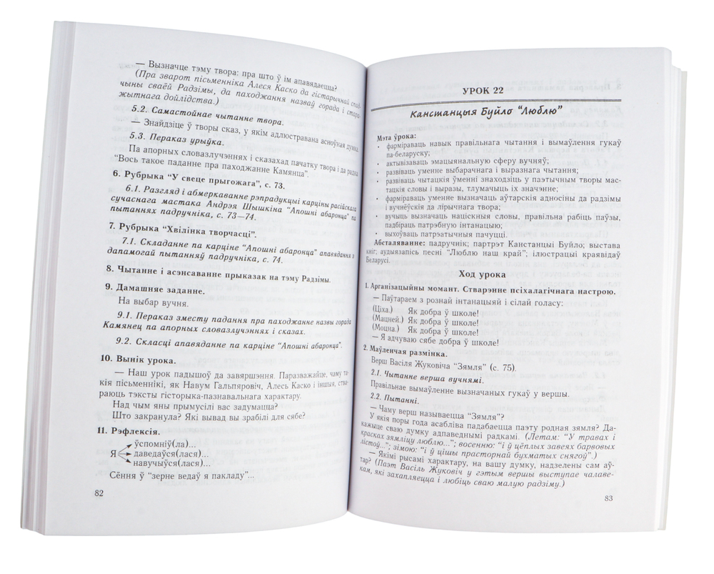 Урокі змяшчаюць разнастайны займальны матэрыял (загадкі, гульні, крыжаванкі), практыкаванні для артыкуляцыйнай гімнастыкі, розныя формы і метады работы з тэкстам.